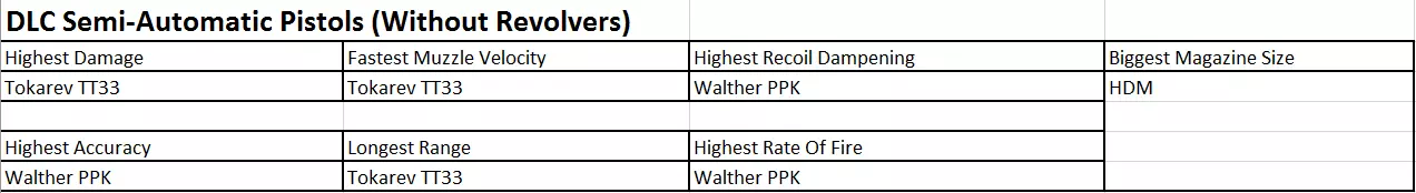 非DLC半自动手枪(不含左轮手枪)