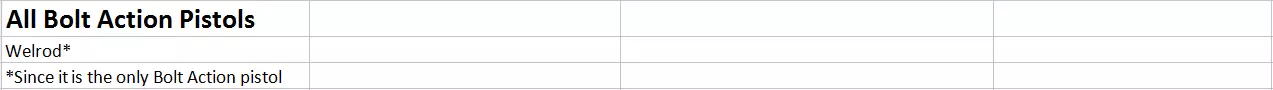 正如标题所述,这份“指南”更准确地说是一份电子表格,是我为那些想了解哪些枪械拥有最佳升级后属性,以及希望自行比较游戏中所有枪械升级后属性的玩家制作的。 我制作这份指南的原因有两点: 1. 当我开始玩《太空工程师》时,完全不知道该以哪些枪械为主力。比较它们的基础属性很容易,但升级后它们的性能就变得大不相同了。 2. 我在谷歌和Steam上搜索了好几个小时,都没有找到类似的展示所有枪械升级后属性的指南。 【更新与免责声明】 我只在较低难度下进行了测试,因为我并非这款游戏的专家。因此,本指南可能不适用于较高难度。狙击步枪数据表 整体狙击步枪