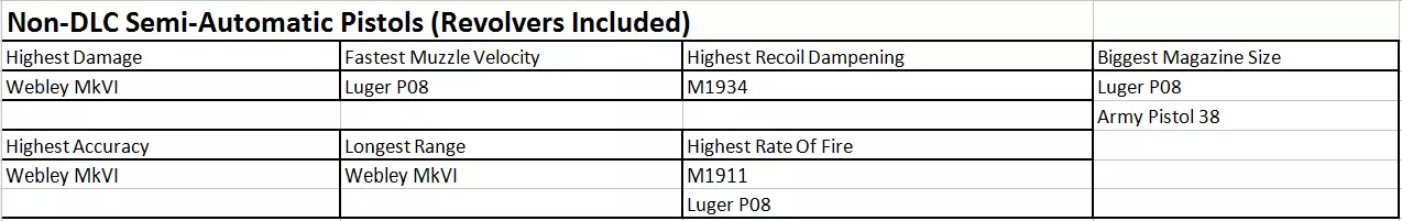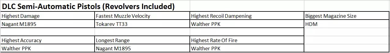非DLC半自动手枪(包含左轮手枪)