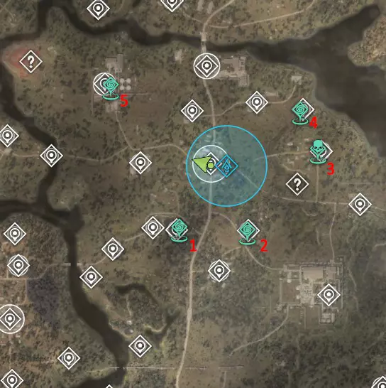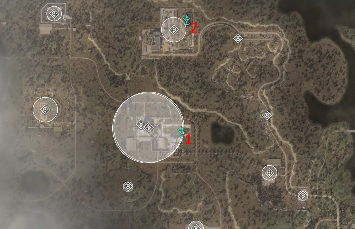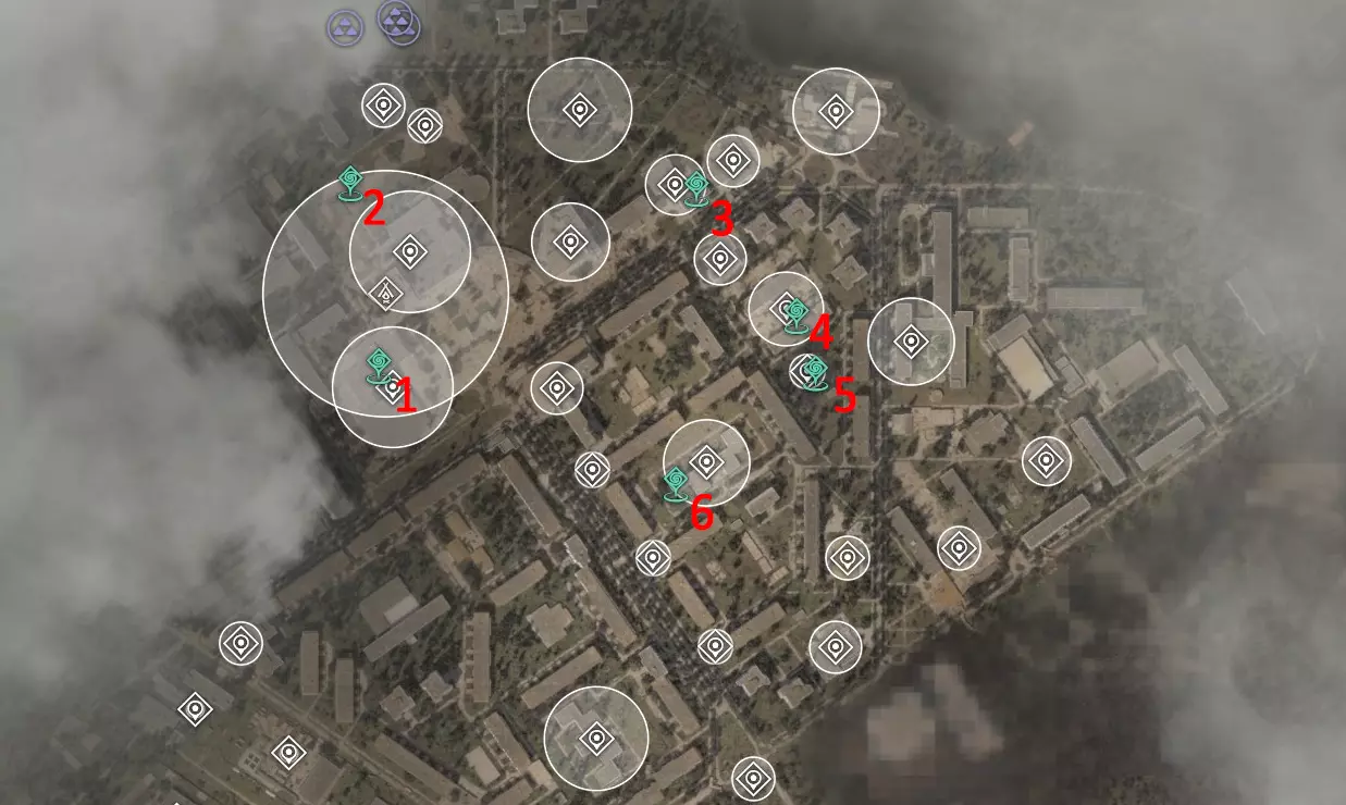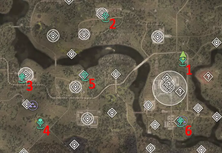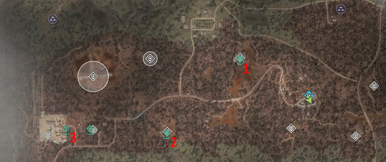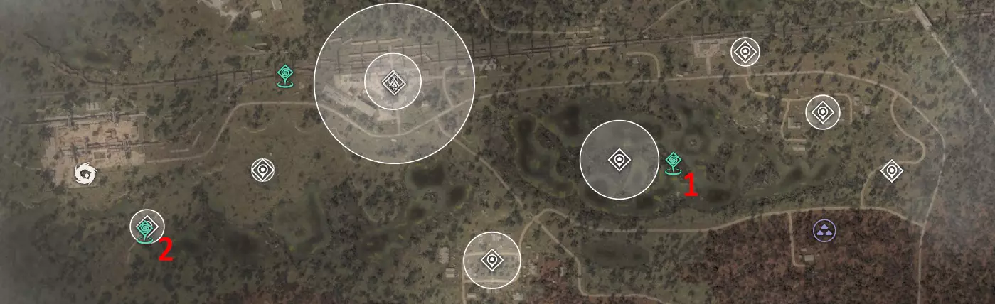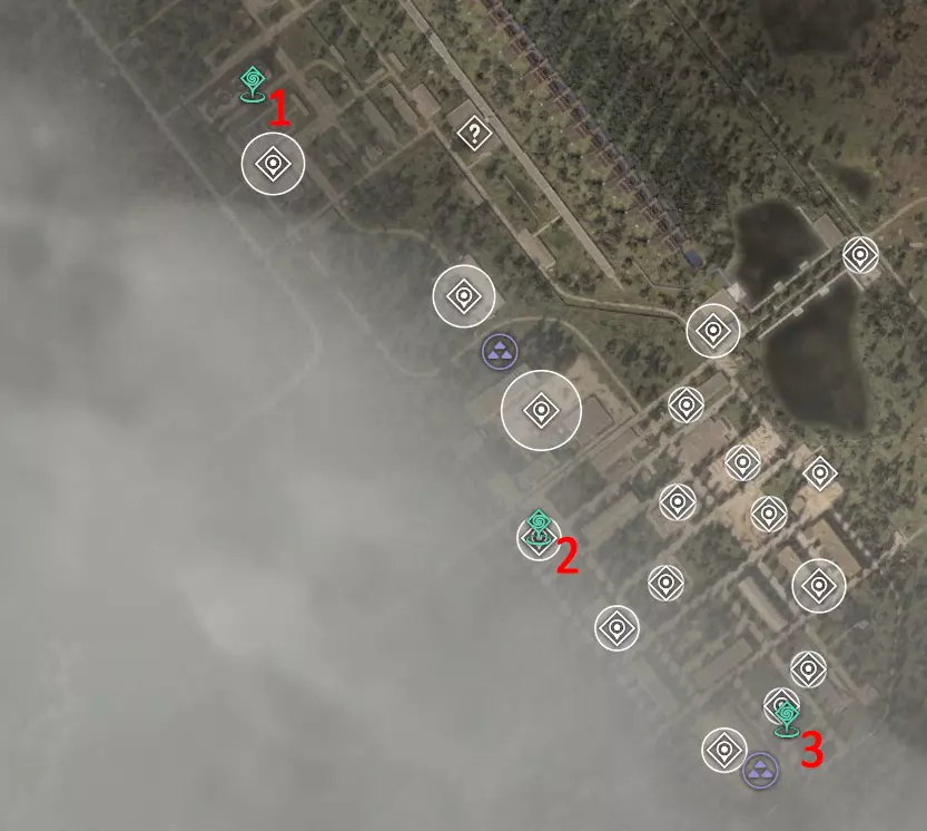 2?. 西北红堡 热异常区 已知威胁:有时会有土匪、僵尸。堡垒顶部有一名哨卫狙击手。 该区域的神器测试将定期进行。这片区域看起来像是会刷新神器的地方,但目前尚未刷新。 化工厂(6)