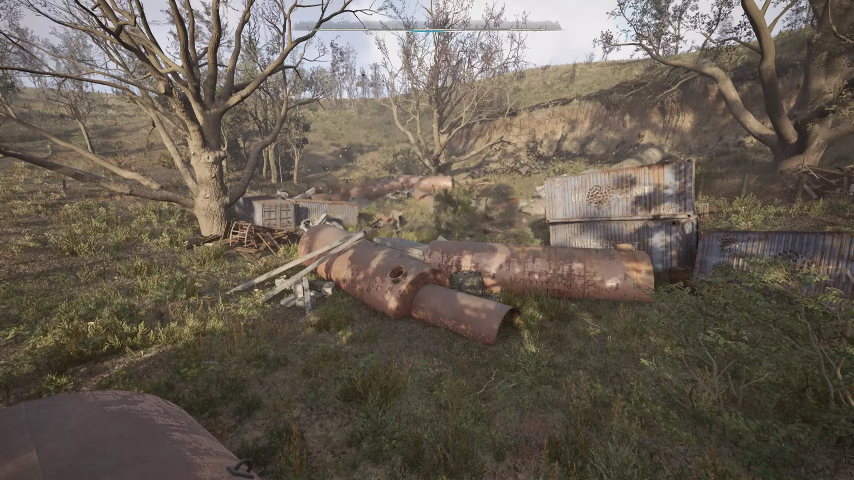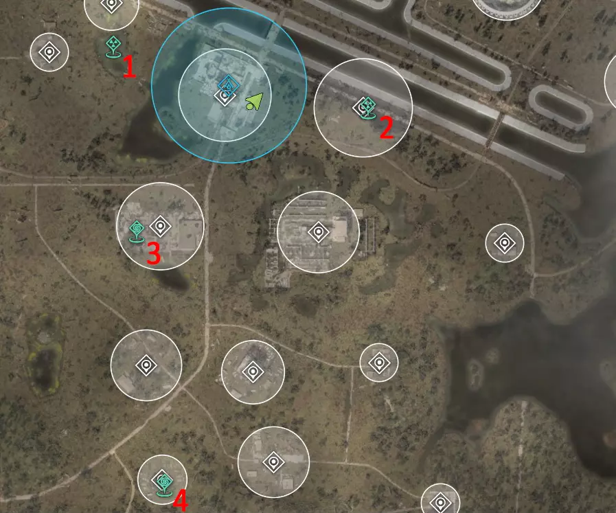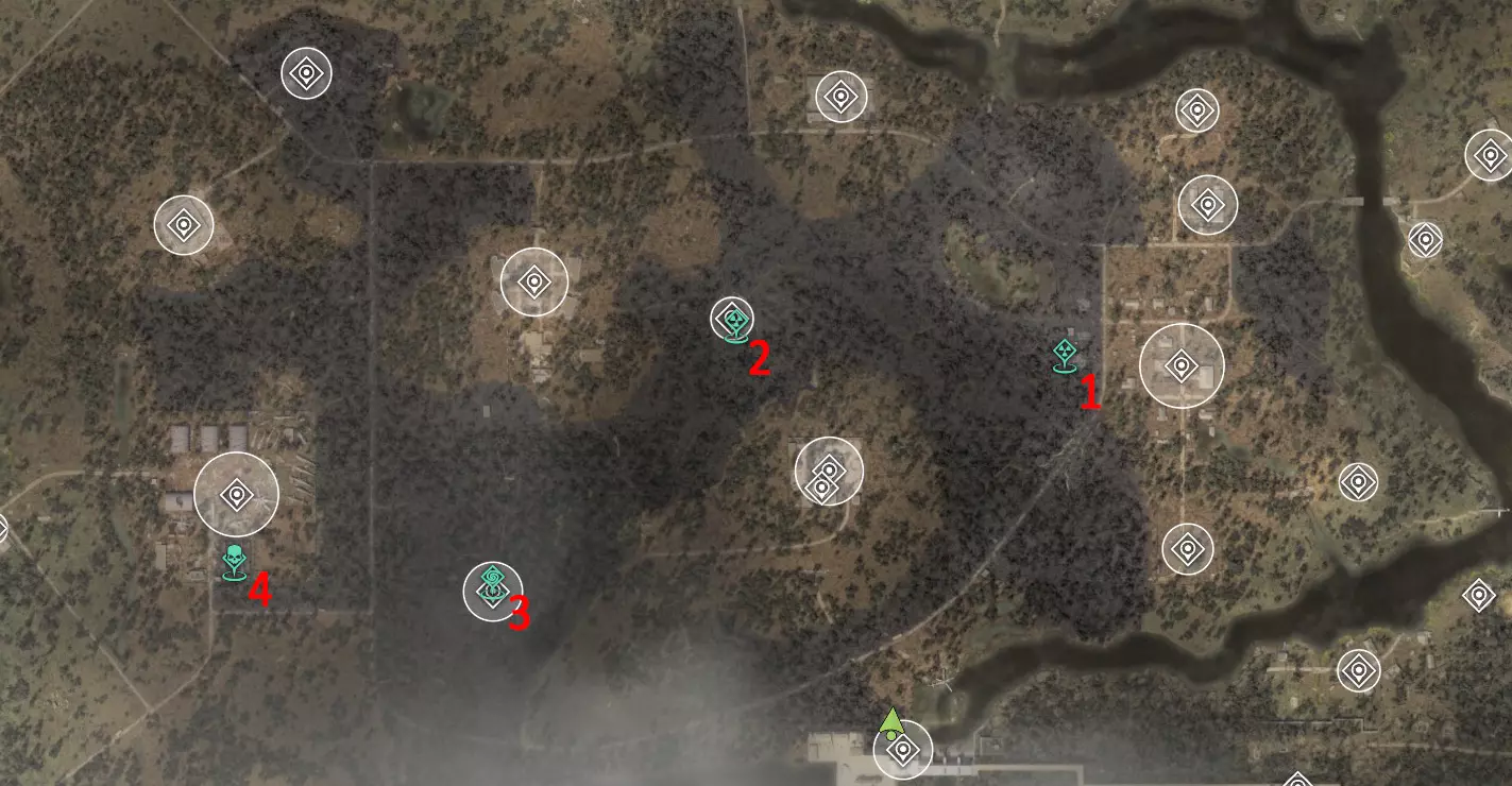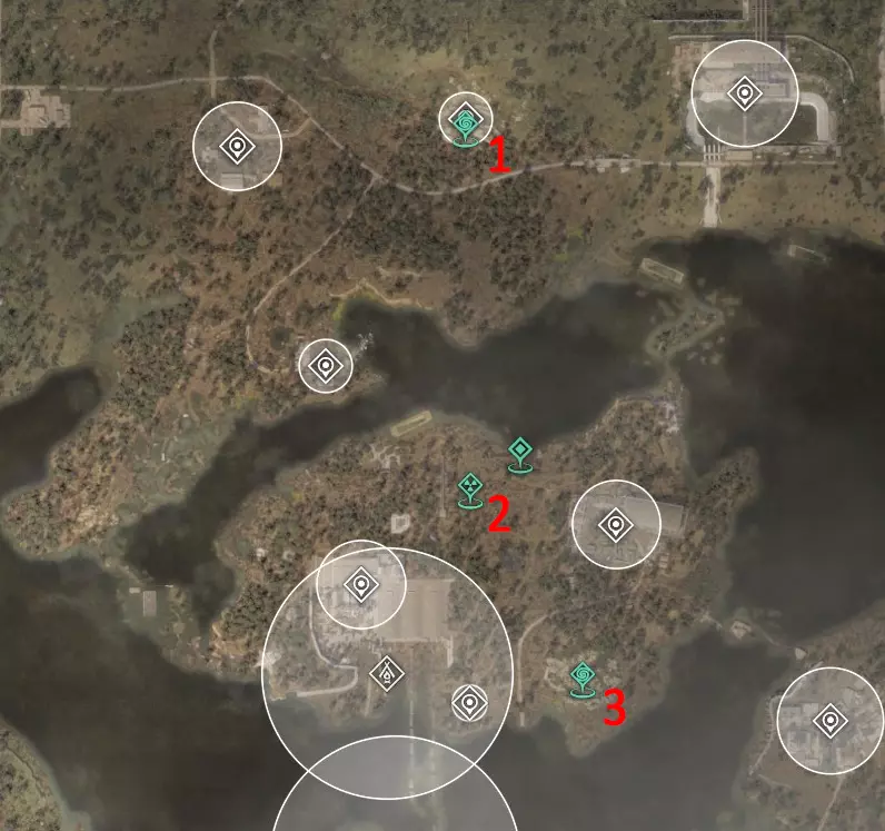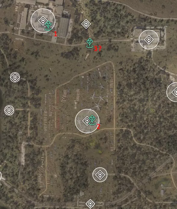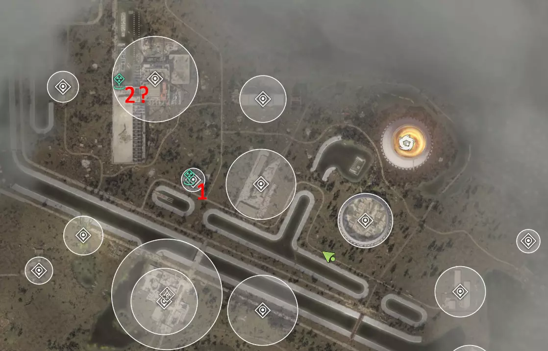 这里也有一个扫描仪。 4. 直升机基地 热异常 已知威胁:变异驼鹿或麋鹿。 神器位置较远,靠近燃料罐或煤气罐,无需与之交战。