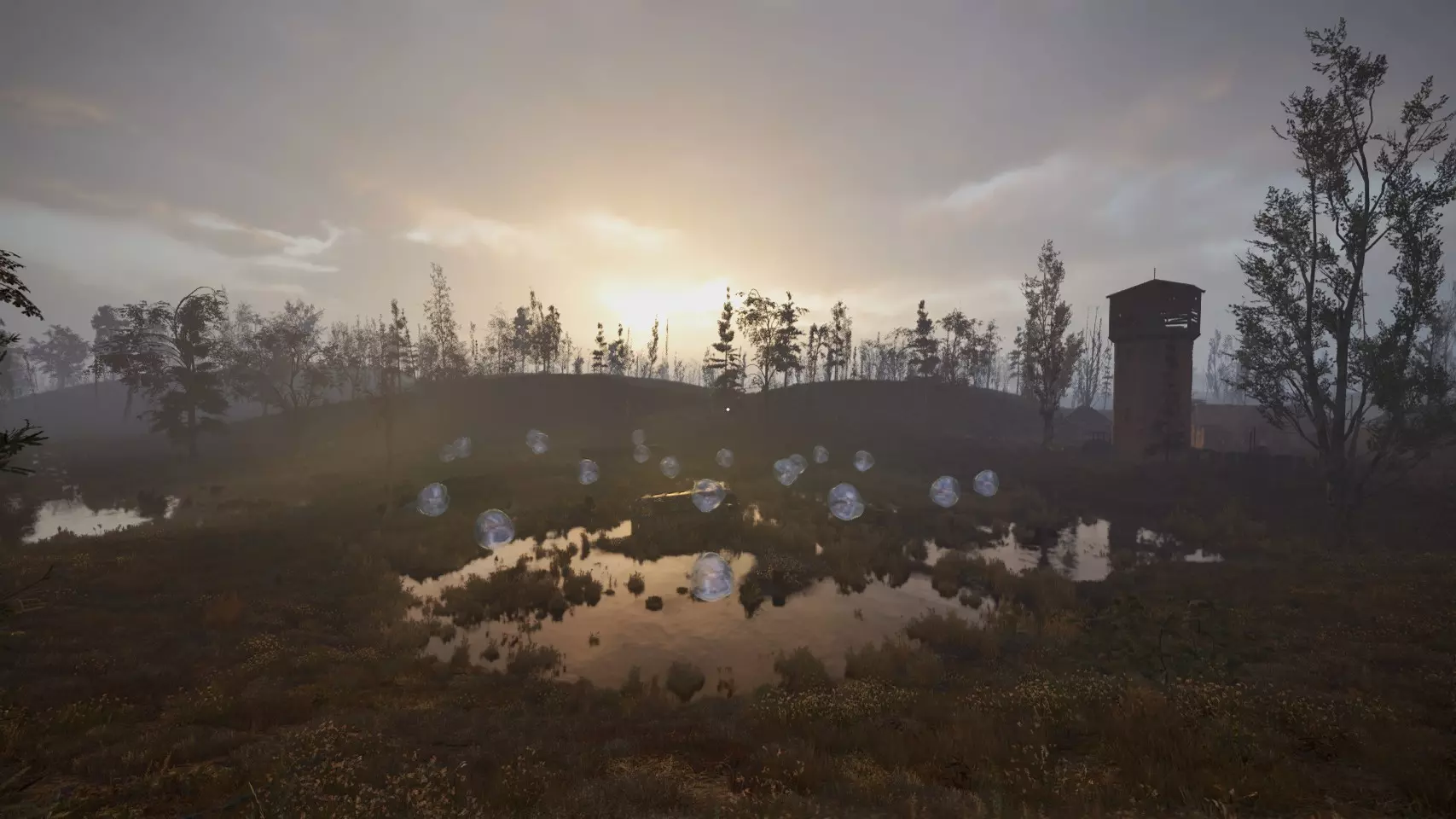 已确认的神器重生地点:2处 1. 沼泽泡泡 闪光弹异常区 已知威胁:随机土匪、雇佣兵。任何与你一同进入的活物都会成为一场灯光秀。 记得戴上太阳镜。