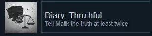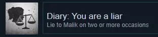 本章节中有“3”种情境需要你决定是否向马利克坦白真相。只要对他撒谎两次,就能解锁成就【Diary: Truthful】。