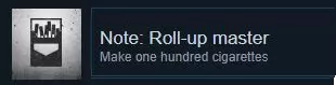 这个成就也很容易达成。你需要制作100支香烟。我建议制作“卷制”香烟,因为它们不需要太多材料。你的地下室已经建造了草药工坊,所以不需要再制作一个。