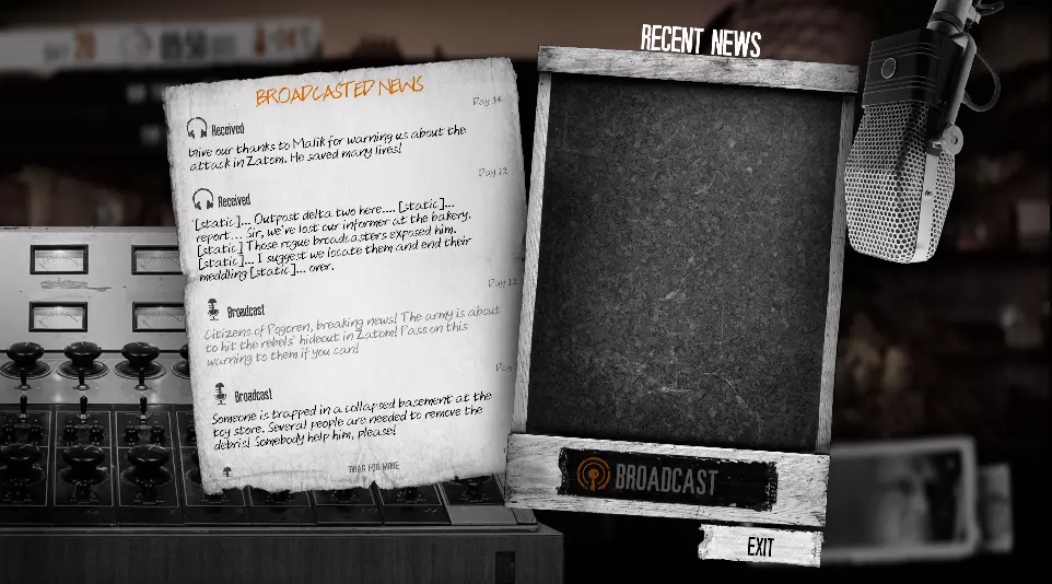 这个成就的获取方法稍微复杂一些。我建议在冲击“You are a liar”成就时顺便完成它。 持续向马利克撒谎,他最终会离开你并加入反抗军,反抗军还会摧毁你的广播系统。 继续游戏,直到商人佛朗科来访,向他询问无线电零件。 他会给你修复无线电所需的剩余零件,但你需要帮他一个忙:帮他找一本相册。这本相册可以在地图上一个新的未探索地点找到。 记得制作一件武器或枪支,不要毫无防备地进入那里。你需要在找到上层的相册之前消灭两个敌人。 将相册带回家,然后等待佛朗科再次出现。(间隔2-3天) 把他的相册交给他,并修复你的广播系统,这个成就就到手了。 注意:他已经回家了