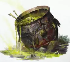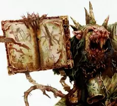 纳垢神庙中的七口千疫大锅被盗。每口大锅都蕴含着一种七大瘟疫。 瘟疫氏族对其大锅有两大用途: - 和平时期,它们用于规范瘟疫氏族的等级制度。氏族成员若想晋升,可请求浸入大锅中。能从这场考验中幸存下来是一项伟大的功绩,他也将因此晋升更高等级。 - 战斗中,大锅可由一群瘟疫僧侣抬行,并作为瘟疫祭司或瘟疫主教的施法平台。 《勃鲁姆尼库斯之书》