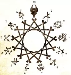 数字13存在于斯卡文文化的所有关键元素中: - 领导斯卡文社会的腐朽领主们聚集在十三人议会中。 - 角鼠在IC 2302年创造的黑色戒律之柱有十三个侧面。 - 记录斯卡文首次出现的提利尔诗歌《卡扎尔的末日》由十三个诗节组成,并记载了后来成为斯卡文巢穴角鼠神庙的角铃的十三声钟响。 然而,疫病氏族明显更偏爱纳垢的数字7而非角鼠的13: - 第一位纳垢信徒在议会中占据了第七个席位。 - 大疫主由七位疫主辅佐。 - 存在七个千疮之釜。圣物 瘟疫氏族最珍贵的圣物都有着共同的起源:纳垢教派。 千疫大锅