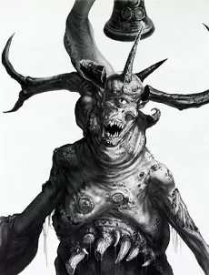 引用自《战锤奇幻角色扮演:露丝契亚》第61页:在奎扎废墟下方,疫病氏族巢穴地道中心的王座厅内,沉睡着这只恶魔。它那腐臭的存在早于鼠人首次抵达露丝契亚,并导致鼠人信奉瘟疫、疾病与病痛。乌斯克里奇纳克高近十八英尺,如同大多数纳垢恶魔一般,它怪诞且满身恶疾,四肢因积液和痛风而肿胀,腹部伸出一张裂嘴。它的头上长着许多扭曲的角,其中一根在根部附近折断了。自从与首位纳垢巫妖缔结契约后,乌斯克里奇纳克已在奎扎下方的王座厅内蛰伏了数世纪,从旧神的地脉网络中汲取力量。效忠徽记 大疫主努尔格利奇