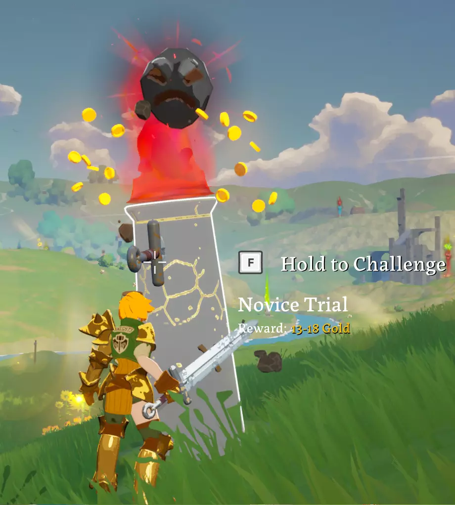 引导试炼之力会使你被召唤出的怪物包围。击败所有怪物后,破碎的图腾顶部会掉落一枚大型金币,你需要将其拾取。