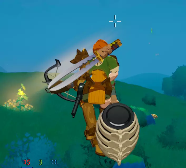第一张地图上散布着向日葵,它们指向的方向就是会将你发射出去的方向。这些向日葵对于规划路线非常重要,正确使用它们意味着你可以收集到关卡中所需的所有属性。它们与移动技巧的互动方式如下: 使用阔剑的副攻击进行旋转攻击后,再从向日葵上发射,你会飞得更远。就像直升机一样? 在空中闪避时会保留向日葵带来的动量,并会朝着你闪避的方向进一步推进,增加可观的距离和控制力。 当你着陆时把握时机跳跃,有时可以保留部分动量以获得额外距离。如果操作熟练,你可以多次衔接这些兔子跳。弹簧强化道具能让你在再次落地前进行额外跳跃,但它与向日葵的互动效果不如闪避。额外跳跃带来的动量有时可能会适得其反,但通常是有帮助的,尤其是能增加空中的【滞空时间】。 十字弩: