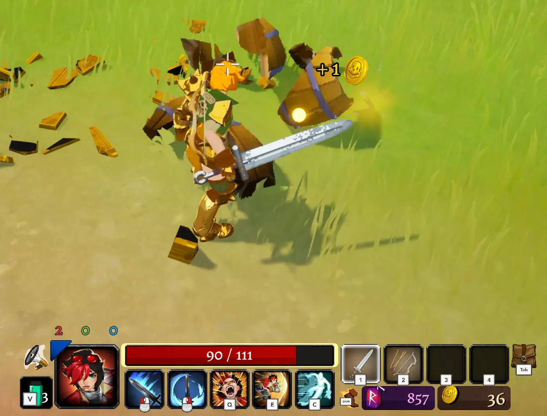 黄金作为一种资源专门用于兑换强化道具,具体方式如下: 市场:提供随机种类的强化道具供你浏览。请注意,部分商品为“仅可交易”,需要你放弃一个同等级的随机强化道具。出售的强化道具会标明价格,且你拥有的该强化道具堆叠数量越多,价格就越高。注意:商人的库存有限,在进行一定次数的出售或交易后(次数显示在他们的帐篷顶部),他们就会收摊。 上锁的马桶精灵:分为红色(攻击强化道具)、绿色(速度强化道具)和蓝色(防御强化道具)。 宝箱:分为普通宝箱、大型宝箱和医疗宝箱。大型商品价格更高,但获得更高品质强化道具的几率更大;医疗商品价格更高,且仅包含生命值/治疗类强化道具。 关于如何有效花费金币,存在一些策略。我个人认为关键信息并非方法,而是时机。每天黎明时分,所有商品的价格都会上涨——包括市场中的所有物品、上锁的厕所和宝箱。随着天数增加,金币的购买力会下降,因此金币在第1天和第1夜价值最高,而在第3天价格最为昂贵。 对玩家而言,最佳的花费时机是在夜晚,此时你已有时间收集金币,且要在价格上涨之前进行消费。 通货膨胀的影响会被一种机制平衡:你可以变得足够强大,从而赚取比通货膨胀导致的价值损失更多的金币。熟练的玩家能够比通货膨胀降低货币价值的速度更快地赚取收益,从而实现每日获得的强化道具稳步增加。 昼夜交替 夜间会生成额外的怪物。这些怪物并不更强,击败后仍会掉落金币。太阳升起时,夜间怪物会立即被消灭。 你只有两个夜晚的时间。游戏的设计机制是让你在第三个夜晚开始前击败 Boss 并逃脱。这是因为存在一个愤怒机制,也就是你在地图上停留时间的人为限制。 在第三个夜晚开始一段时间后,幽灵会生成并立即发起攻击。这些幽灵的攻击必定命中并造成伤害,还会叠加一层减益效果。此减益效果会增加你受到的伤害,并降低移动速度。叠加到大约4层减益时,你会立即死亡且无法移动。你只需要在第三个夜晚停留足够长的时间以抵达面包车。如果无法做到,这局游戏就失败了。 我个人喜欢在夜间进行黄金试炼,前提是我足够强大到能轻松击杀怪物。这会增加可击杀的怪物数量,从而获得更多金币,同时不会改变我的游戏方式。 武器 你的快捷栏有4个槽位。每种武器类型都有普通攻击和特殊攻击。 遗憾的是,如果你在快捷栏中装备了多件相同类型的武器,它们的特殊攻击会共享冷却时间,这使得无法通过装备4把阔剑来持续使用旋转攻击。因此,建议你持有多种不同的武器,以充分利用攻击的多样性。 每种武器类型都有一个关键属性,可通过图标颜色来识别。这些属性很直观,但值得注意的是,存在力量弓和敏捷弓。不过目前这一点并不重要,如果你正在学习《指环王:重返摩多》(LORT),建议你先找到自己喜欢的武器类型。 【注意】:捡起武器会将其放置在热键栏的下一个空位。如果你的背包已满,则无法捡起。此时,如果你按住拾取键,将会用当前持有的武器与该武器进行交换。 你可以通过打破木桶、击杀怪物,或使用黑曜石钥匙打开武器箱来获取武器。