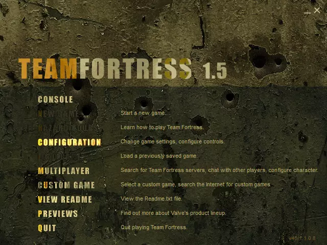 军团要塞1.5(半条命v1.1.0.8—1.1.1.0) 1. 原版WON菜单(点击打开完整图片)
