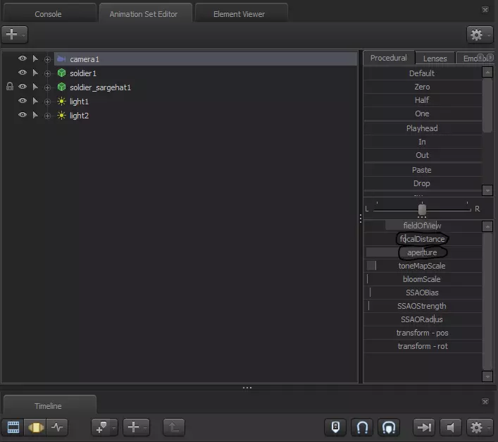 步骤2:点击弹出窗口中的【相机(x)】。 步骤3:在动作集编辑器中,点击相机,然后在动画集编辑器中移动焦距滑块,直到紫色方块物体与模型产生穿模。 步骤4:将光圈表滑块一直滑到最右侧。