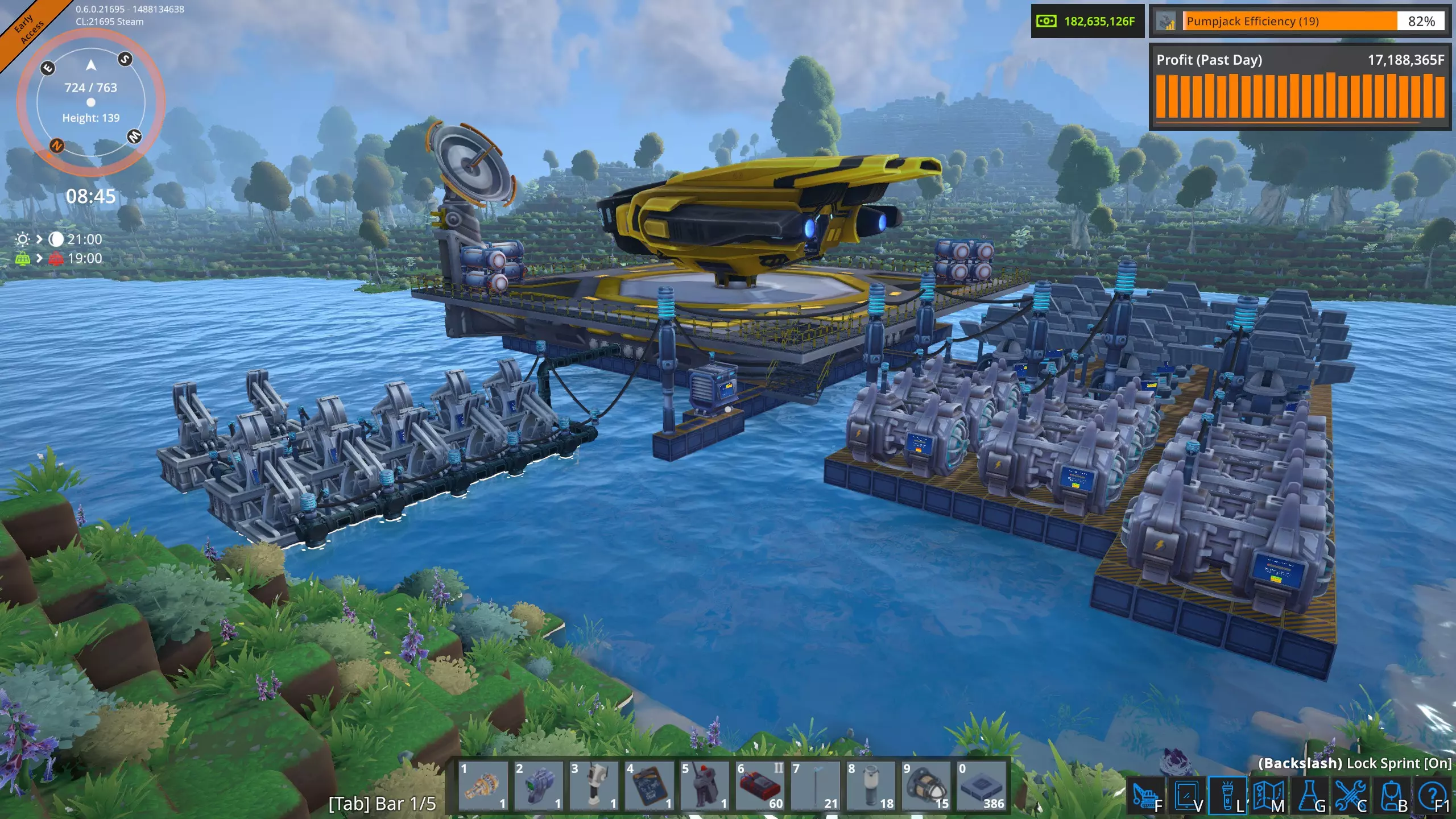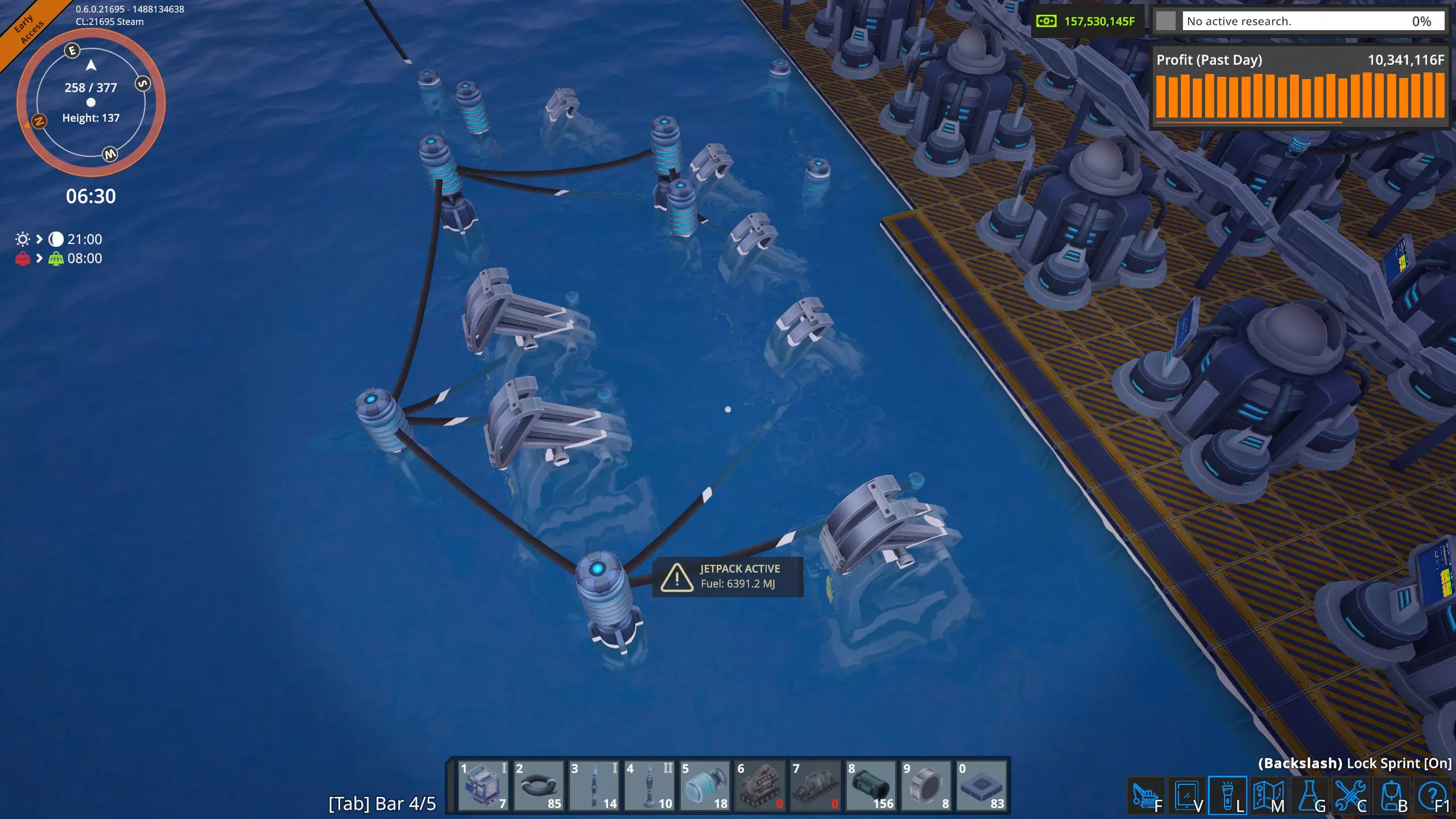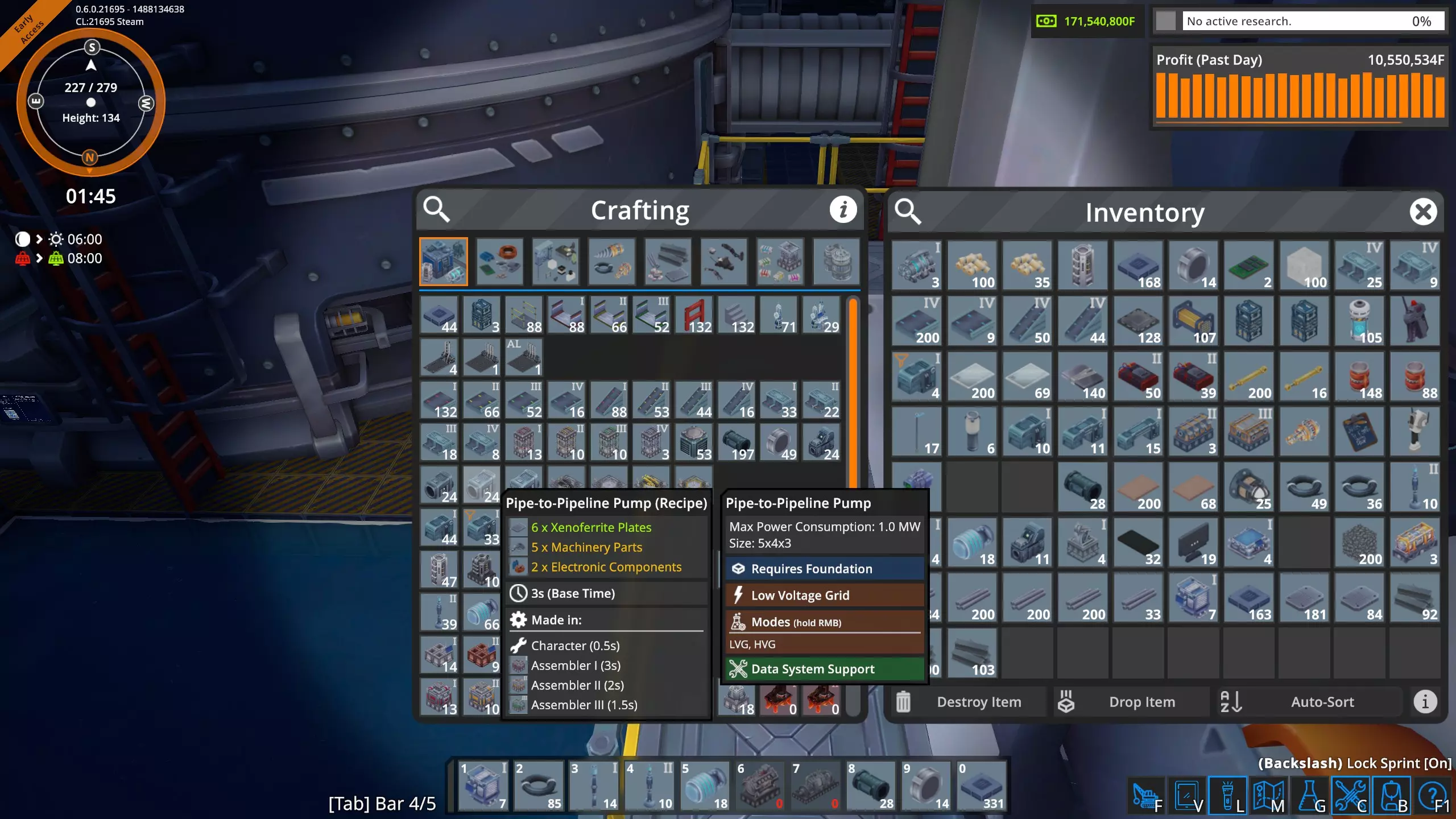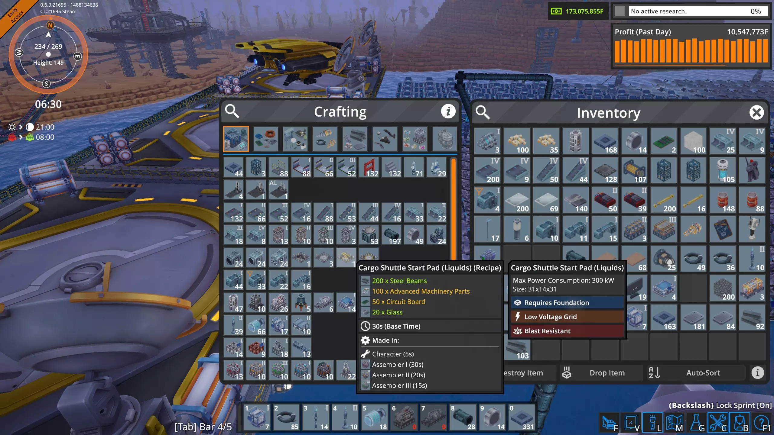 高速卸载 液态起始平台不需要每个平台配置五根管道。一个抽油机每分钟只能产出1800升,因此普通管道(36000吞吐量)可以处理20个抽油机,这比我在单个奥鲁米特矿床使用的数量要多。 因此,我将修正我的结论,并可以肯定地说,只要坚持不懈,确实可以通过空运为工厂供应奥鲁米特。 当前状况 经过几个小时的努力,我已经完全建立了奥鲁米特空运供应系统。