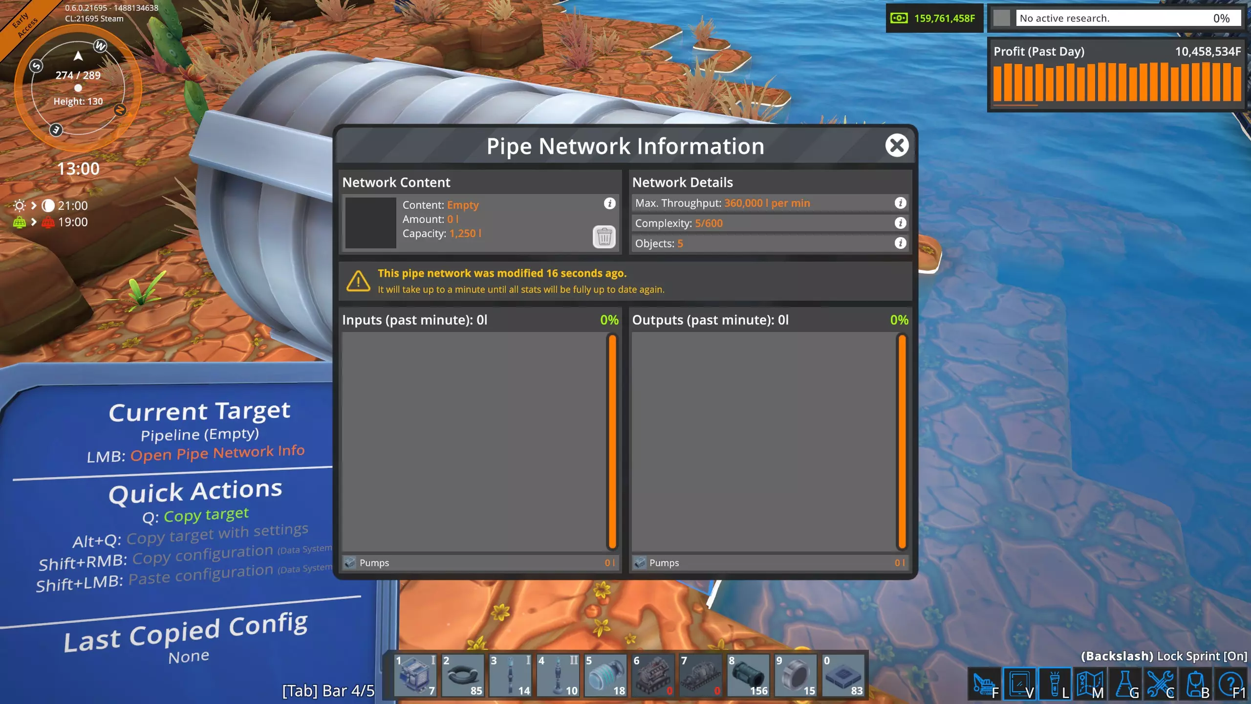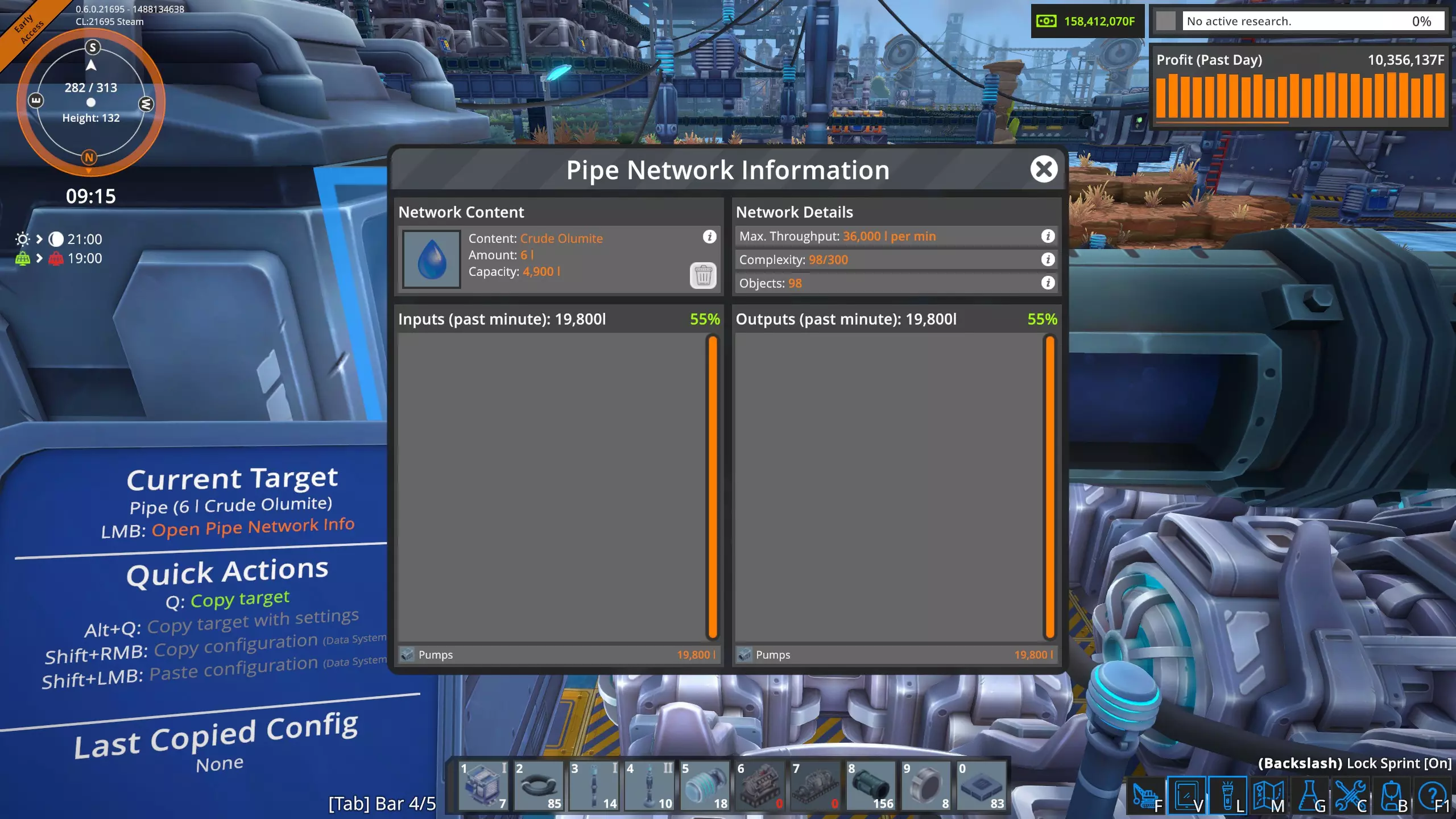 这是我两条主要输油管道中其中一条的统计数据,该管道负责将olumite输送至我的工厂。 下方是一段管道的局部。它比普通管道大得多,吞吐量是普通管道的十倍,达到每分钟360,000升。