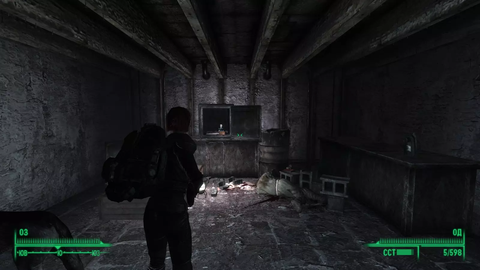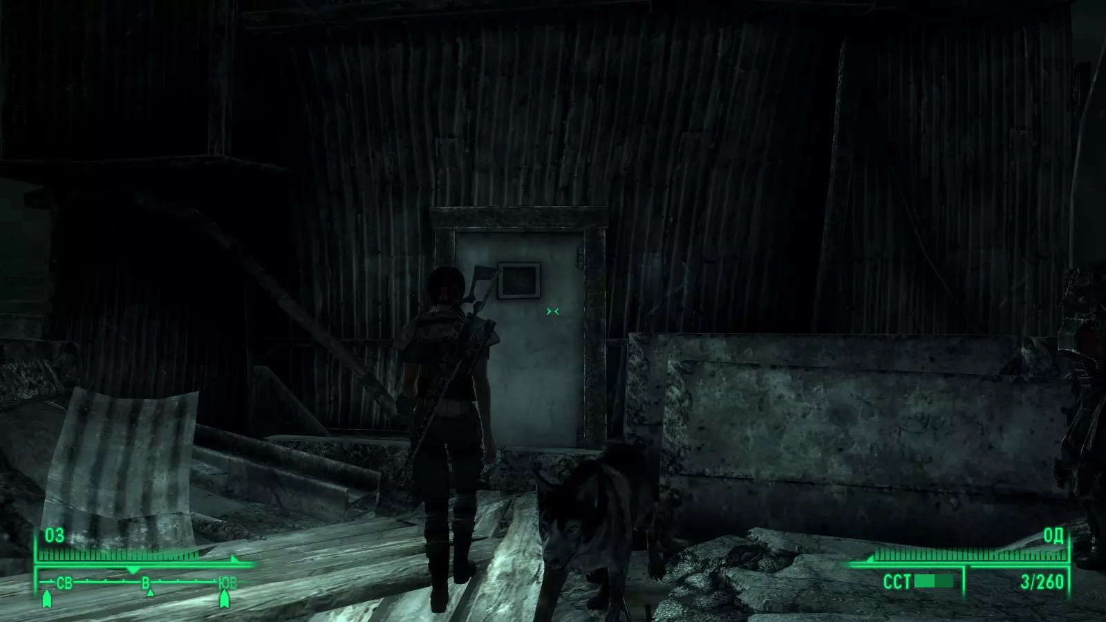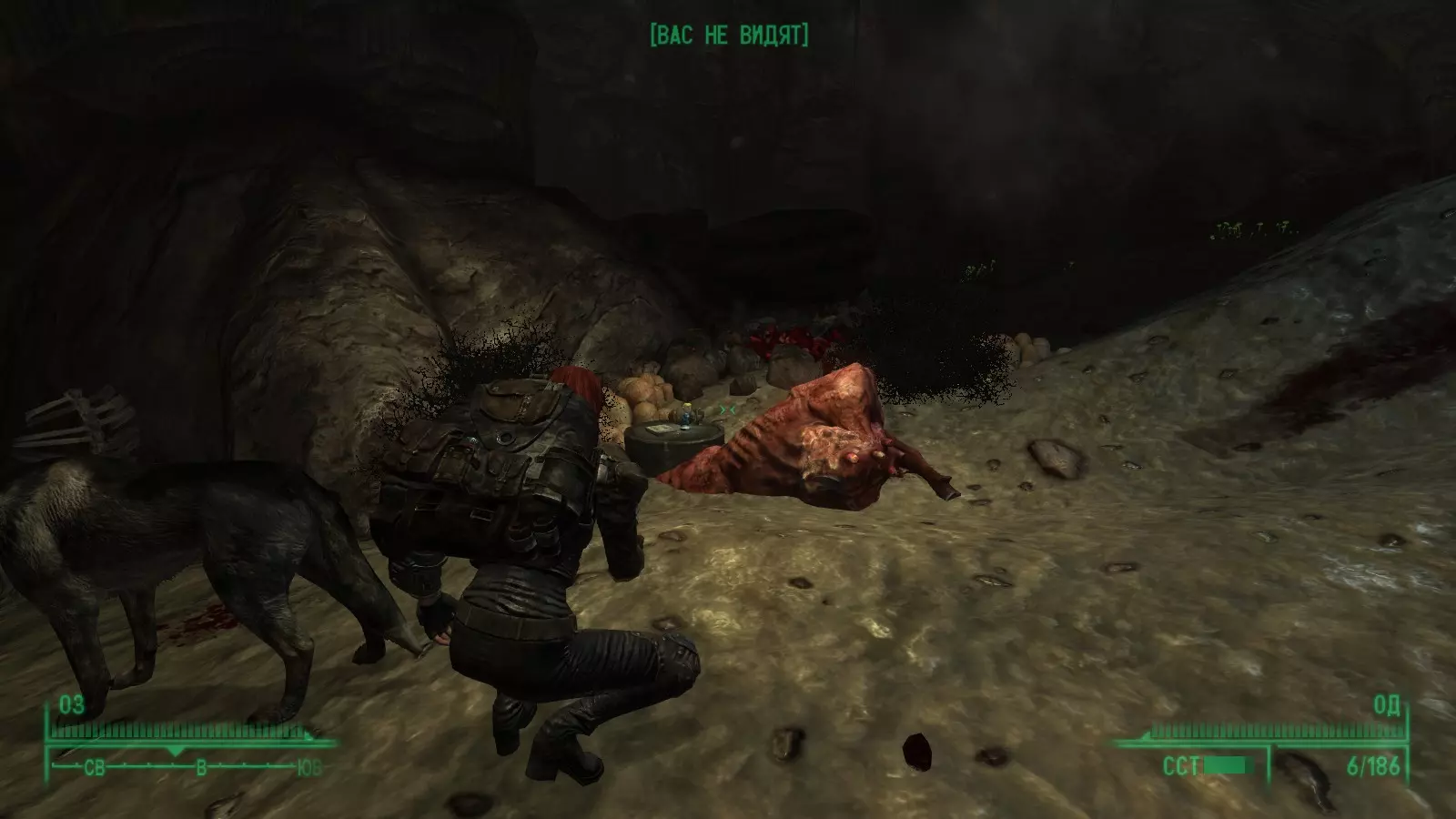 “唯有观察,方能洞悉弱点” 小狗“耐力” 准备清理死亡爪避难所,在第一个房间的尸堆旁。耐力+1。