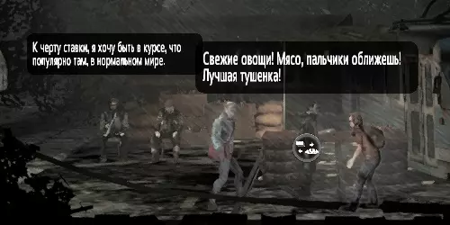 这里的操作非常简单——在对话进行时打开门,从背后袭击士兵。 士兵喝醉了,普通角色对付他不会有太大困难。 我们一闯入,女人就会毫发无伤地逃出超市。 解决敌人后,搜刮他的物品。他身上有一瓶伏特加、一把自动步枪和随机数量的子弹(5到20发)。之后开始搜刮整个超市,把所有物资都堆到中心的某个地方。最贵重的东西都在地下室。快结束时,我们走到物资堆旁,拿走当前需要的战利品。 别忘了涂鸦。 下次进入该地点时,我们会遇到一个女孩,就是之前救下的那个女孩的朋友。她会感谢我们当时的出现,并保证那个女孩一切安好。 回到避难所后,我们会获得士气加成。方案二:超市中的拾荒者。 拾荒者共有三人——两名男性和一名女性。他们持有武器,但并不具有攻击性。 拾荒者会和你一起在超市内搜寻,拿走他们所需的物品。