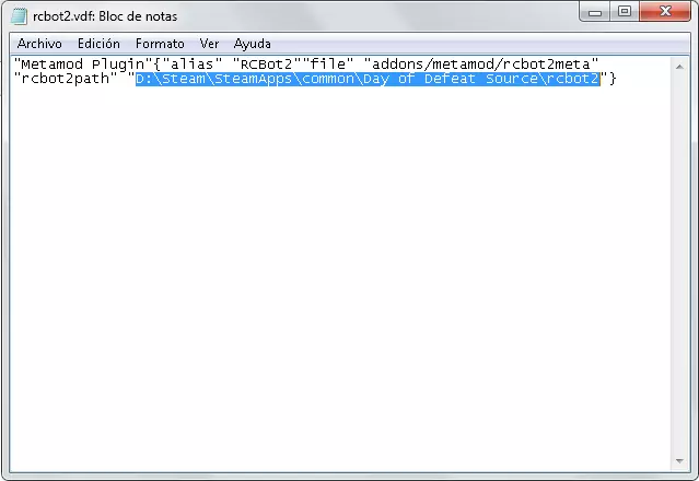 例如我的路径是“C: Program Files Steam steamapps common Day of Defeat Source rcbot2”,它会保持这样: