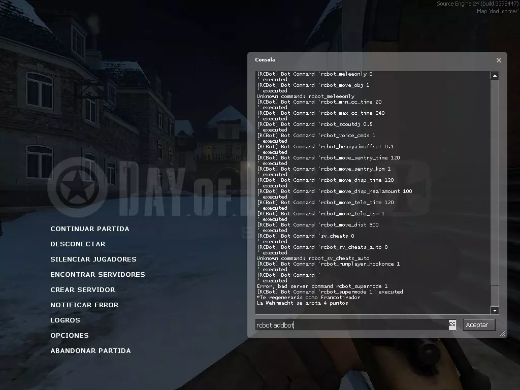 然后我们保存文件。 步骤5 完成!!! 只需进入游戏,不要关闭控制台,创建一个游戏,在游戏中使用命令“rcbot addbot”添加机器人,使用“rcbot kickbot”从游戏中移除机器人。需要注意的是,这些机器人仅在官方地图中可用。最棒的是,我们还可以获取游戏成就!