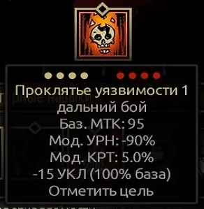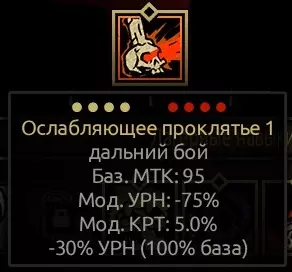虚弱诅咒 具有不错的命中率,初始基础施加概率为100%,可使敌人受到的伤害降低30%,持续3回合。在最高等级时,虚弱效果提升至40%(等级提升效果为30-32-35-37-40)。这是对抗某些拥有强力攻击的 boss 和怪物时极为有用的技能,尤其考虑到虚弱效果可以叠加,最高可叠加至-60%甚至-90%的伤害减免。
