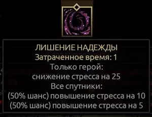 绝望剥夺 它并非最实用的技能——单回合治疗25点压力看似很棒,但会使同伴压力增加5或10点,这个代价实在太大。不过在某些情况下可能有用,例如与十字军的激励演讲搭配使用时。