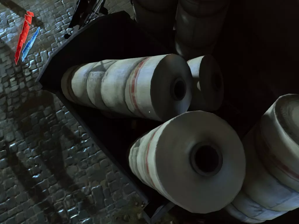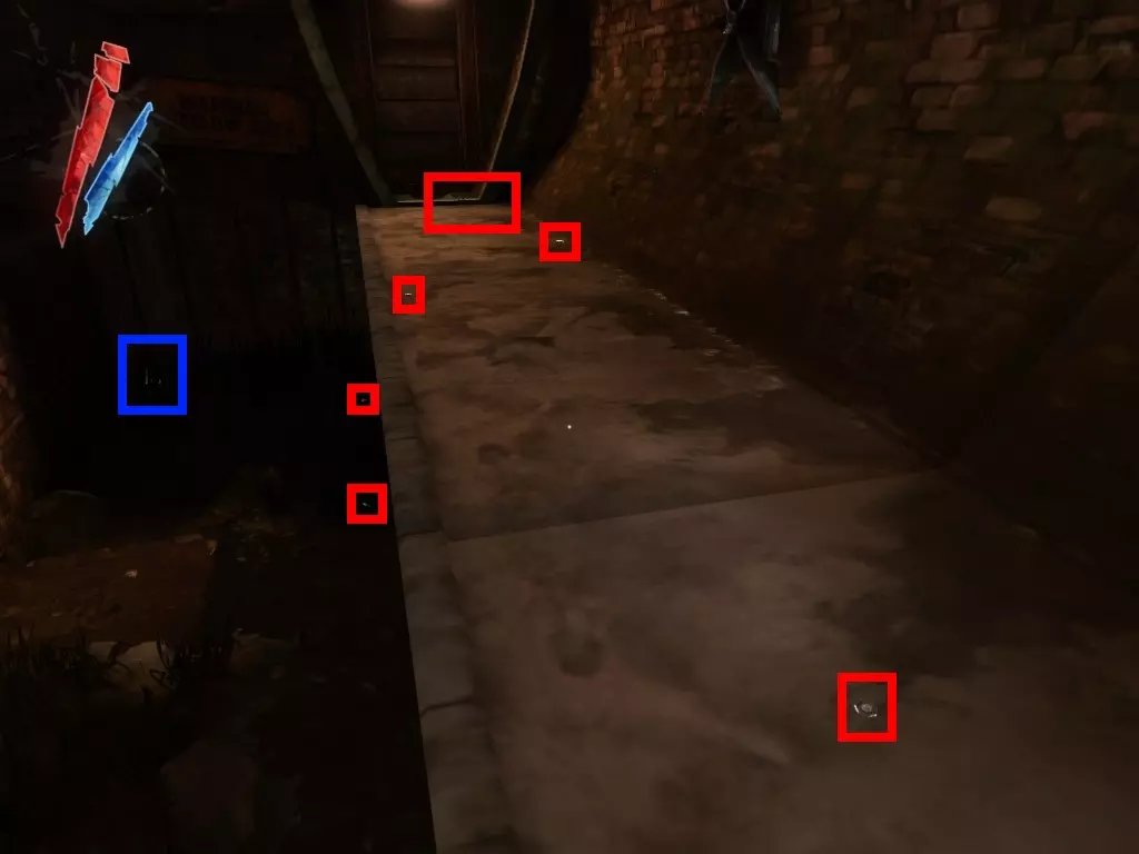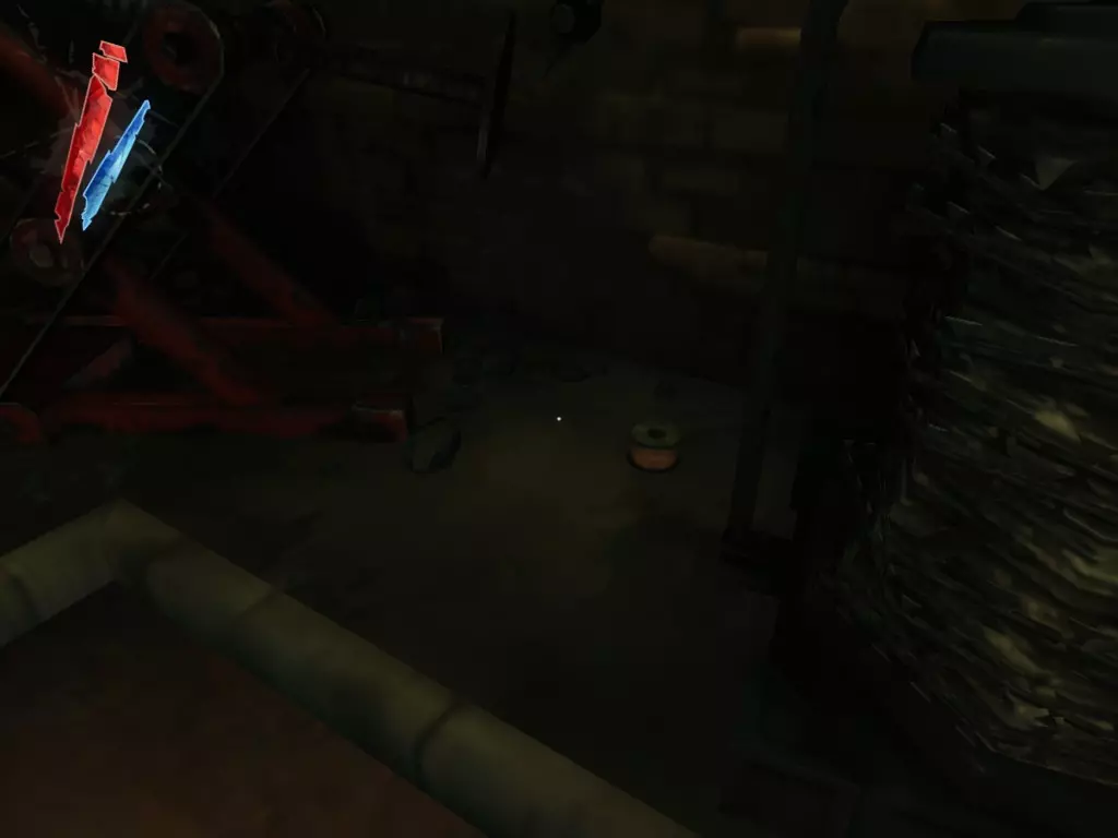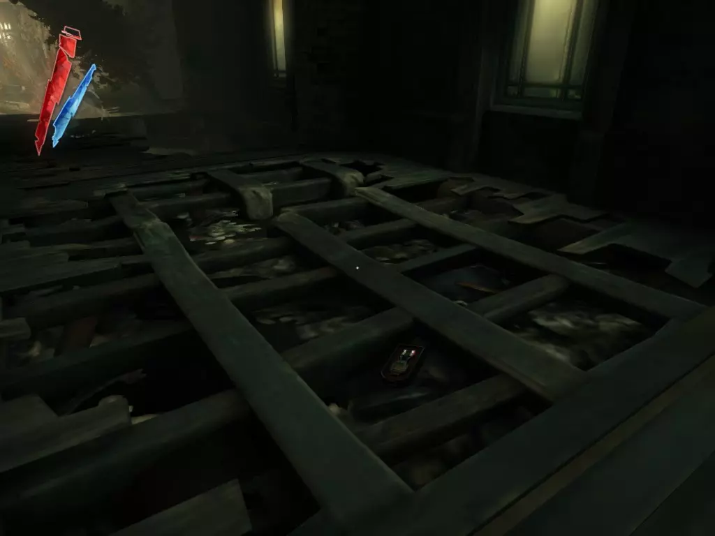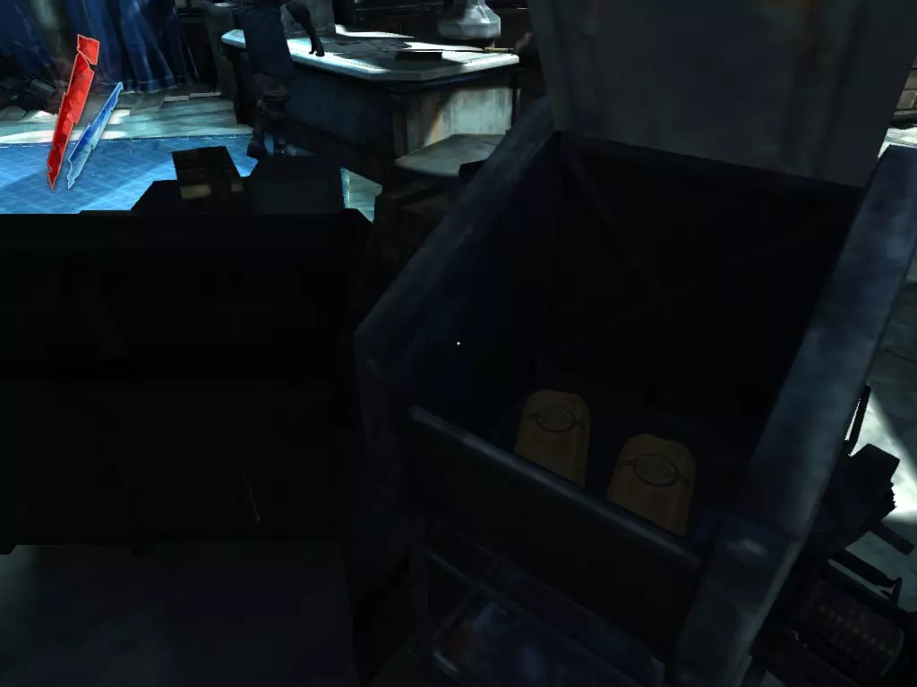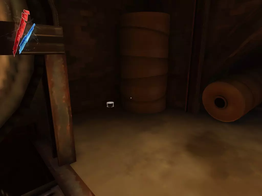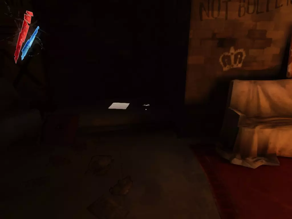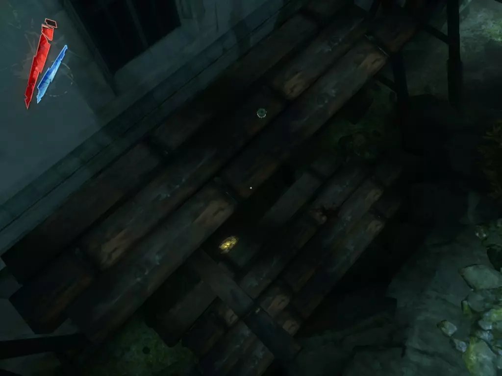 在倒塌画作后面的同一个房间里,地板上有一个符文和5块金锭。 (从这里开始,你的监工伪装将不再起作用,所以是时候潜行行动了。) 战利品:500 总计:855