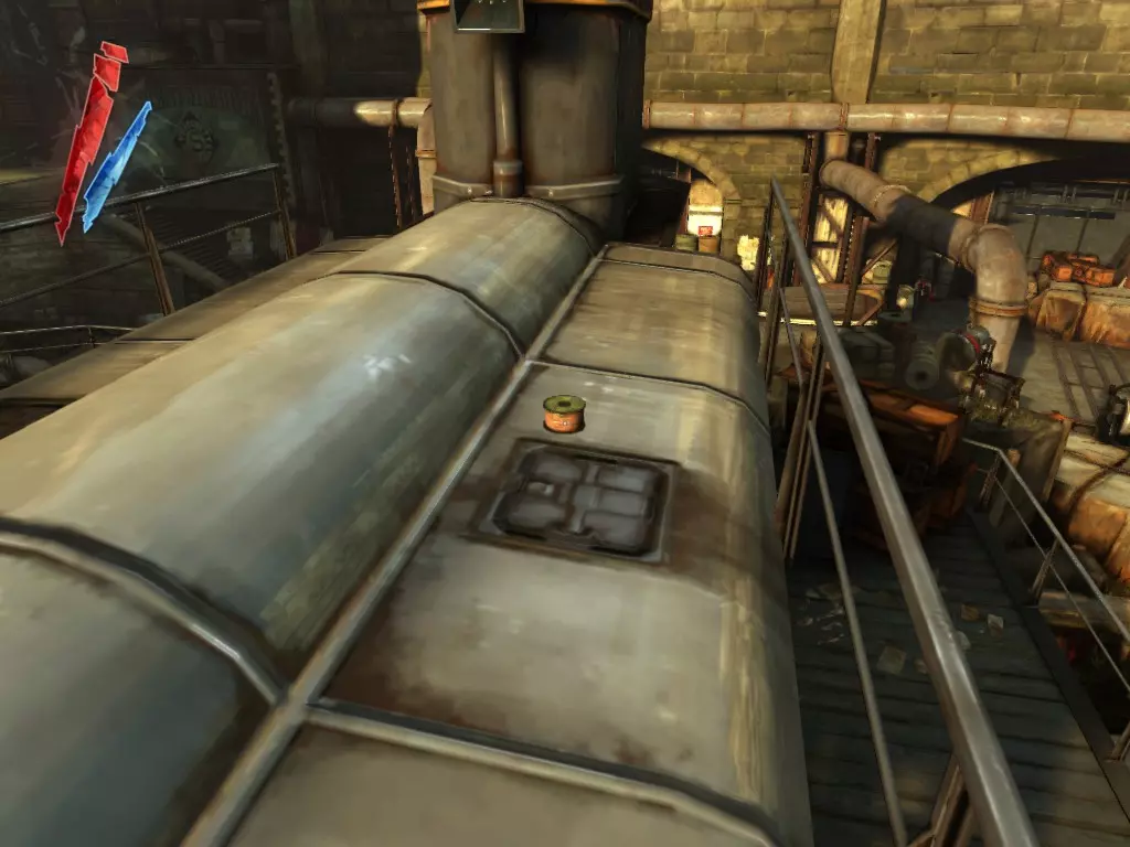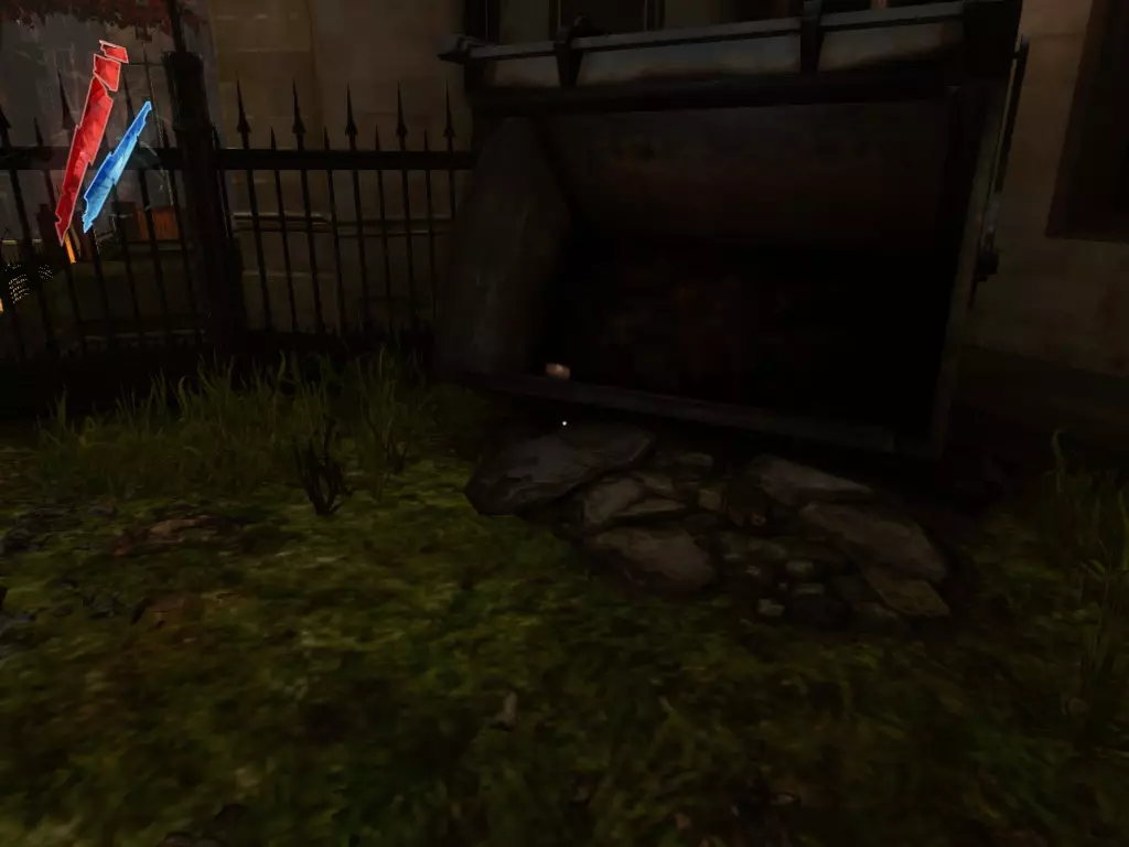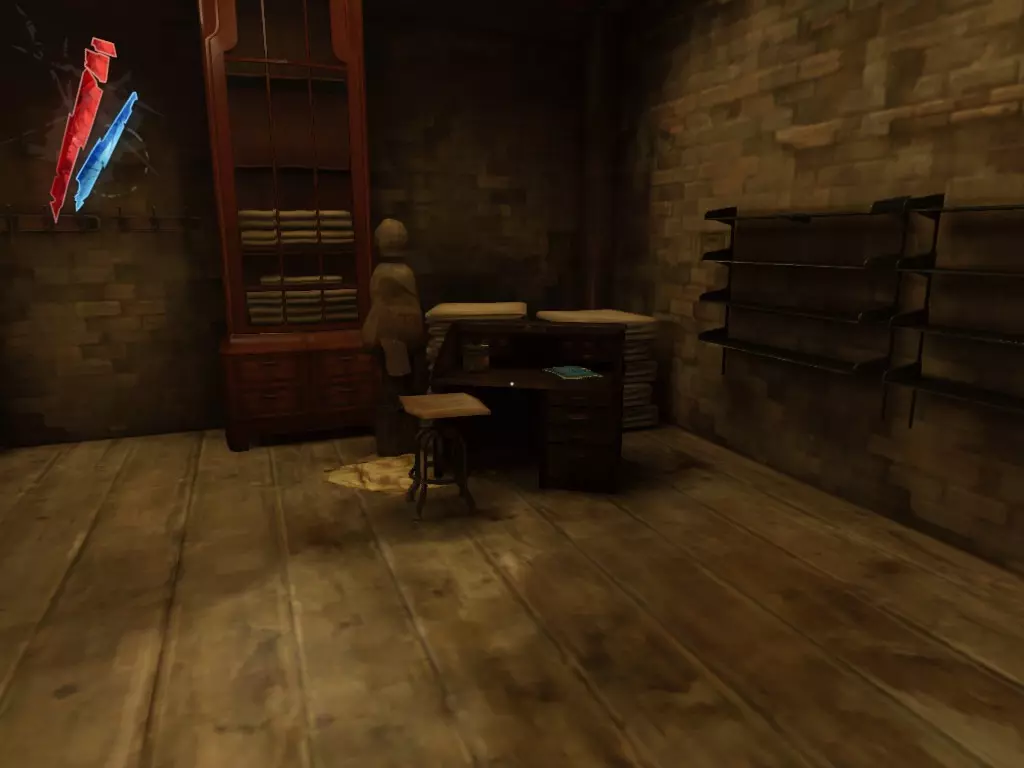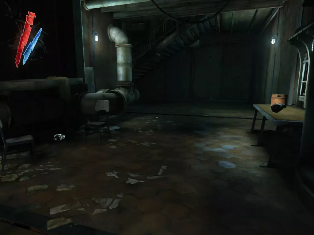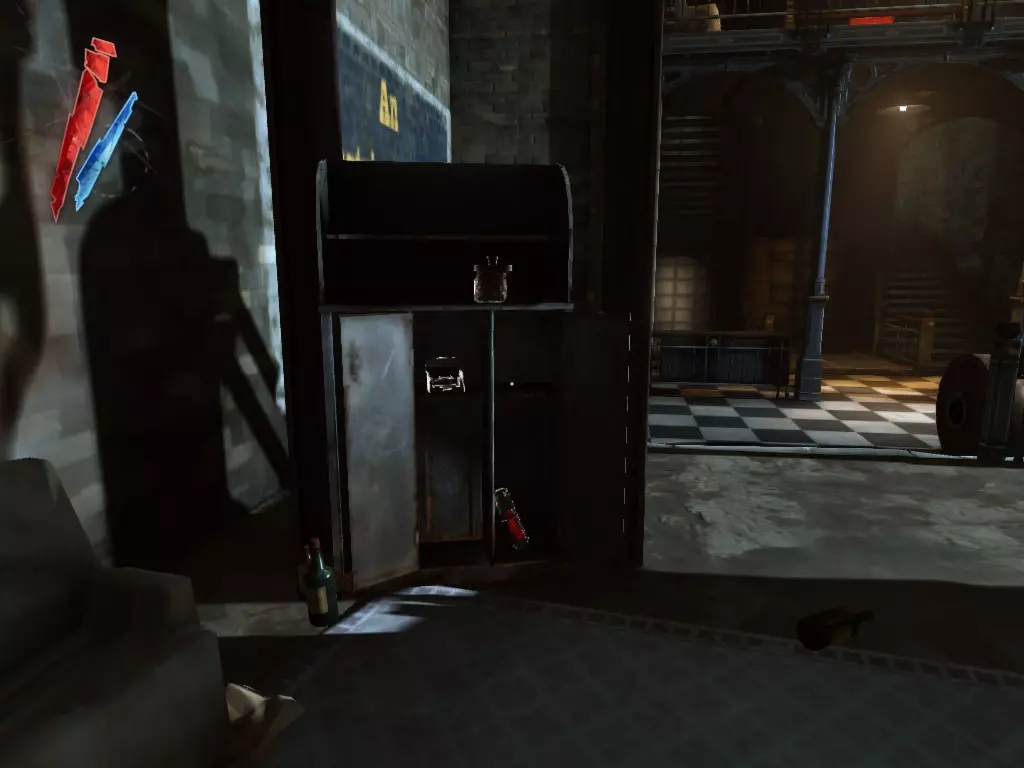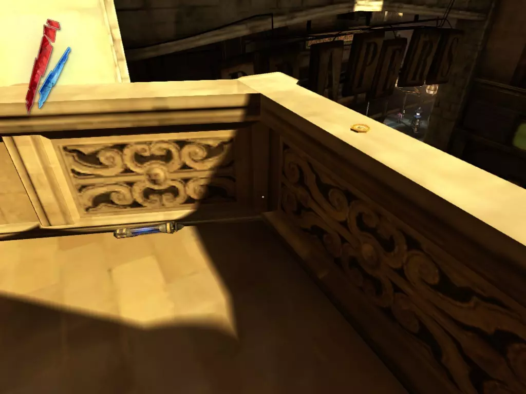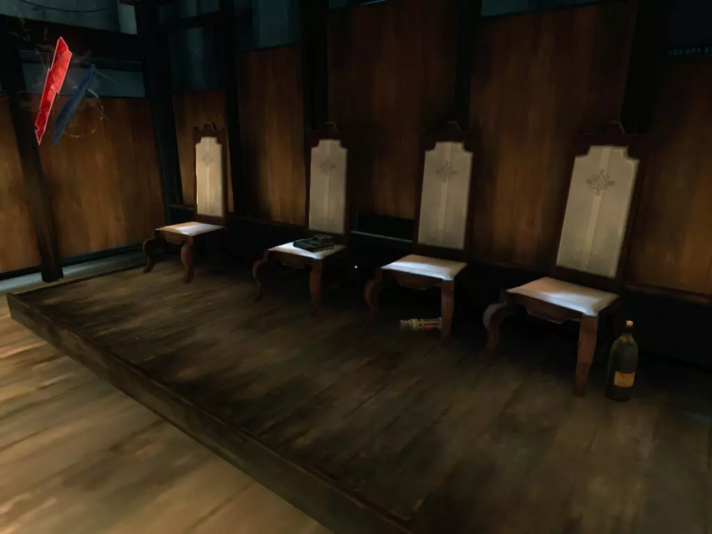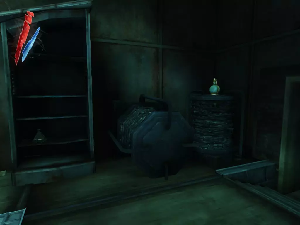 在倒塌画作后面的同一个房间里,地板上有一个符文和5块金锭。 (从这里开始,你的监工伪装将不再起作用,所以是时候潜行行动了。) 战利品:500 总计:855