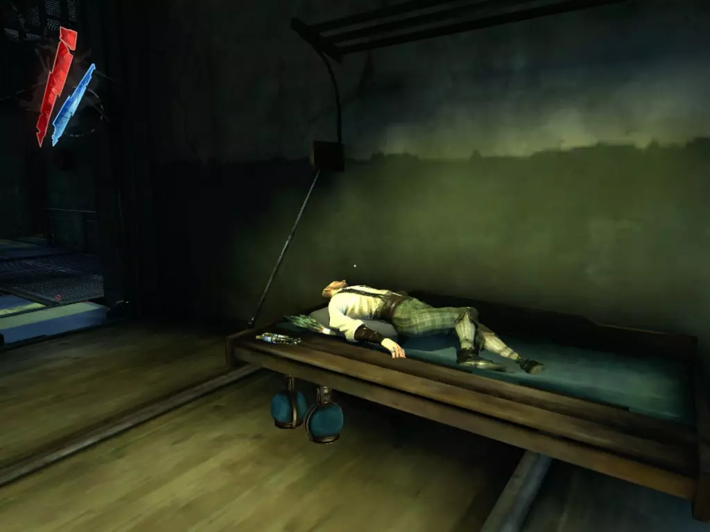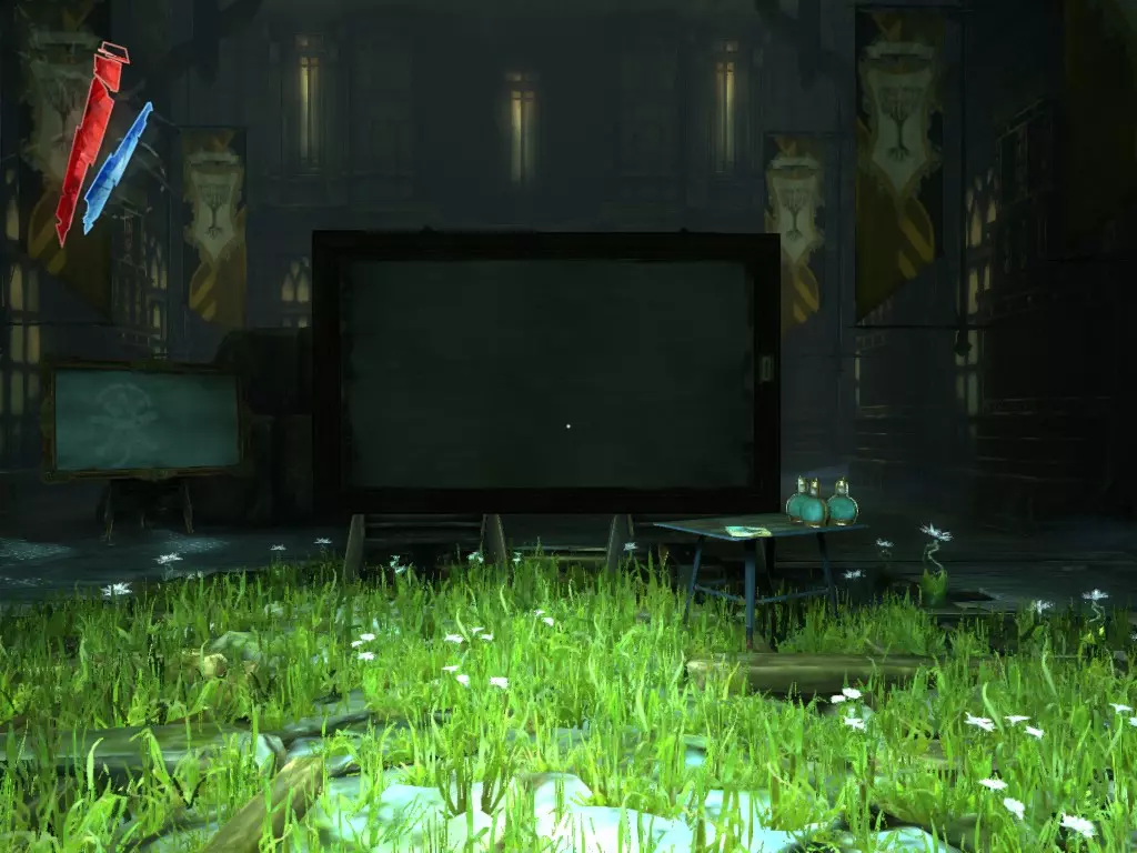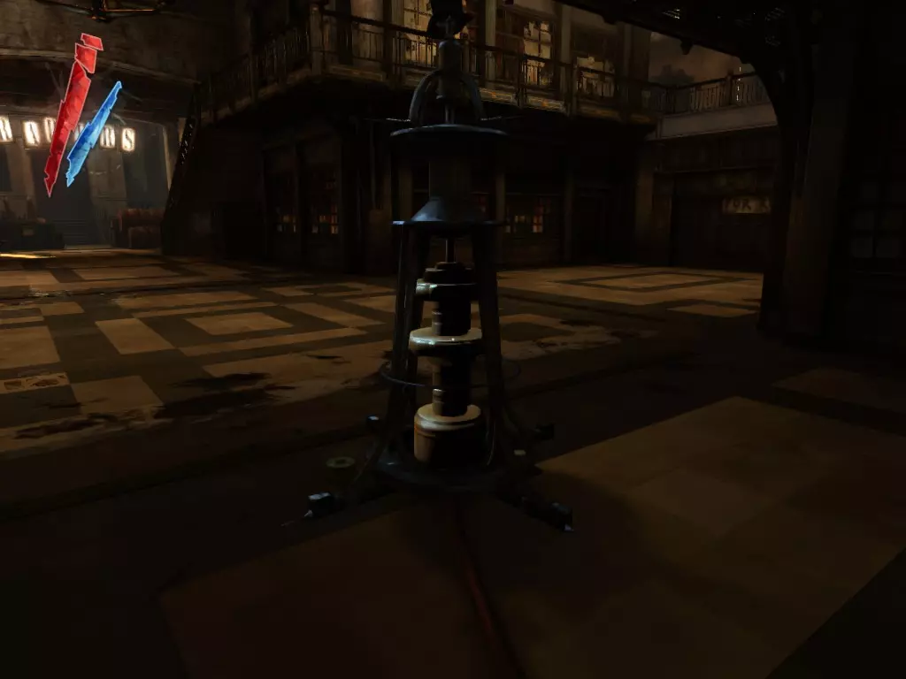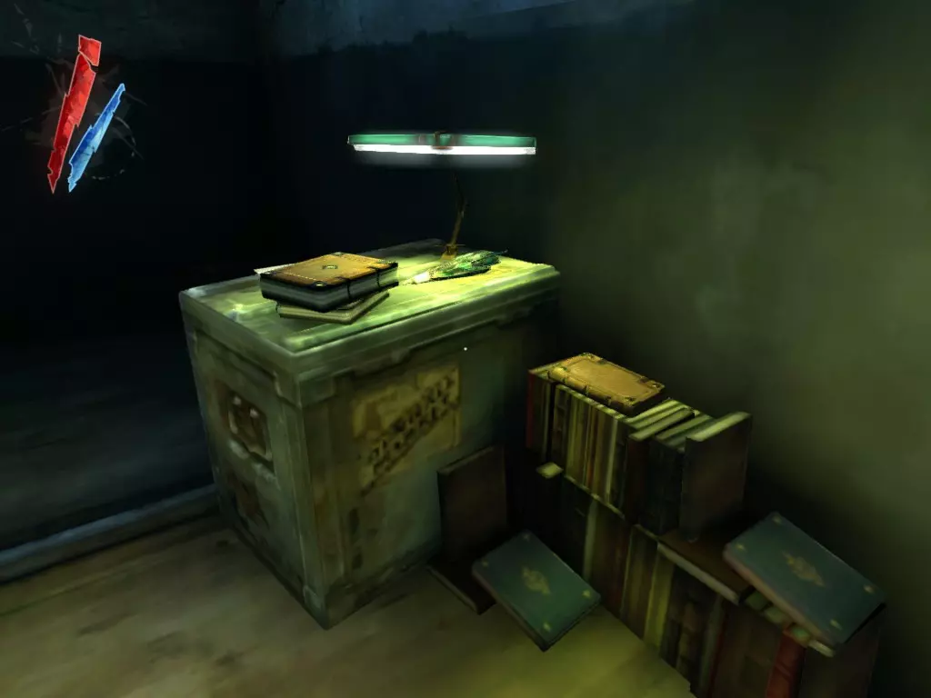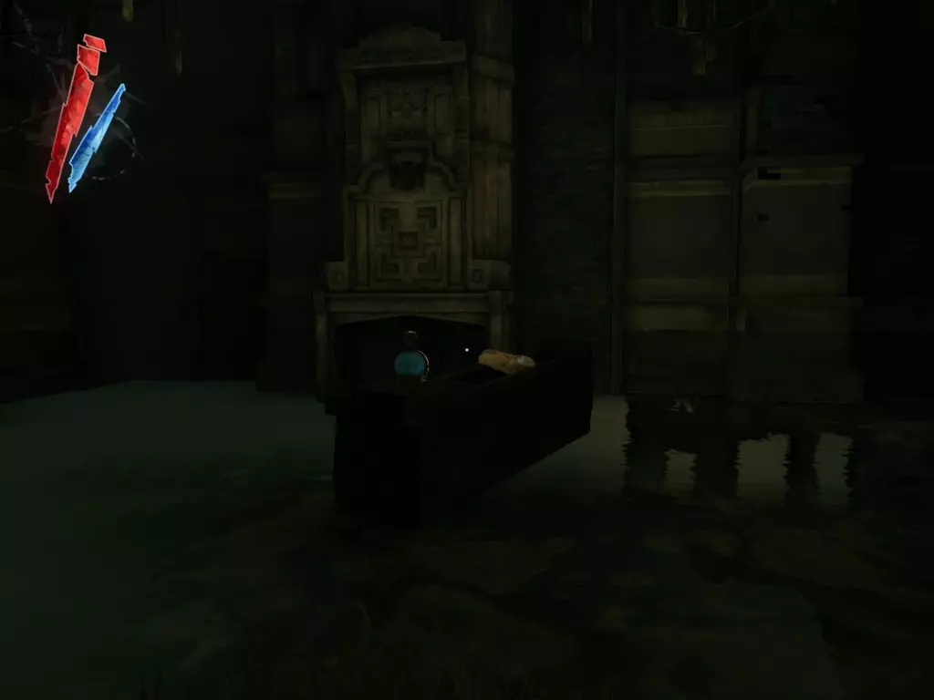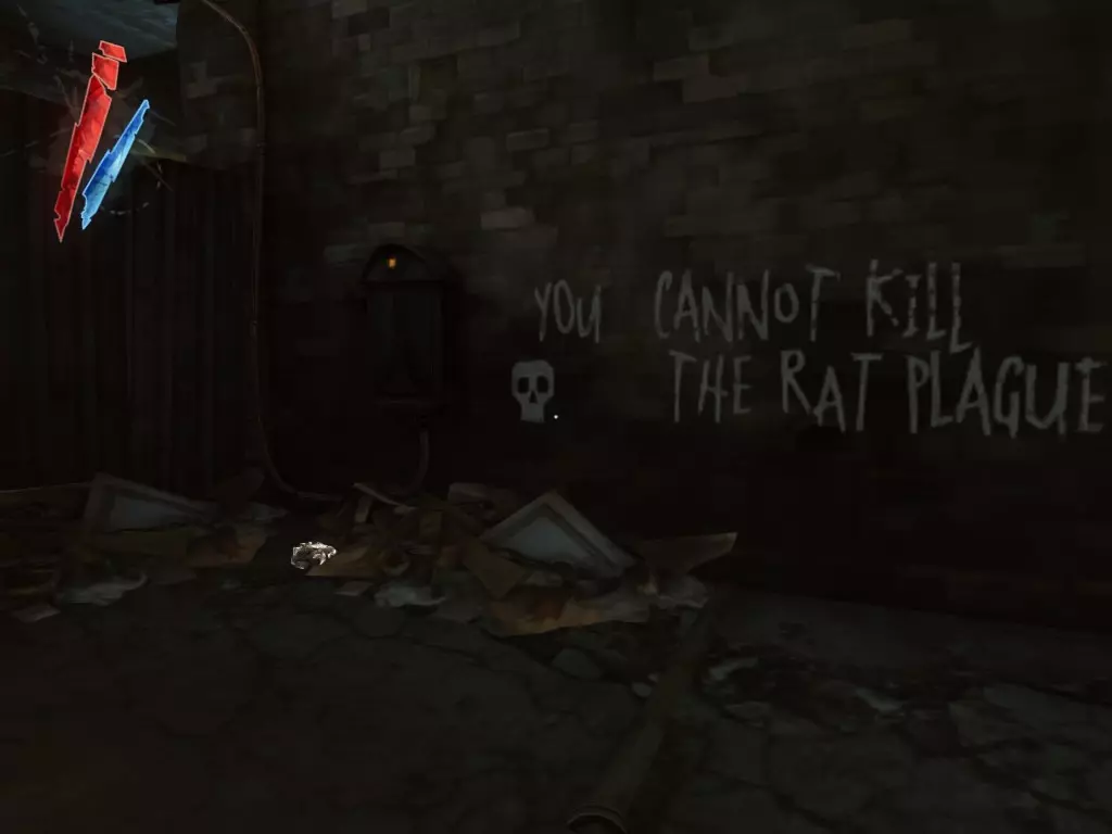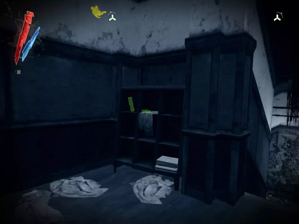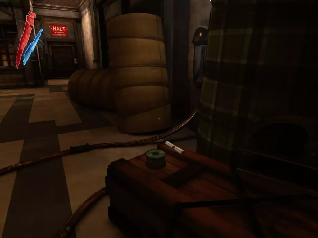 在倒塌画作后面的同一个房间里,地板上有一个符文和5块金锭。 (从这里开始,你的监工伪装将不再起作用,所以是时候潜行行动了。) 战利品:500 总计:855