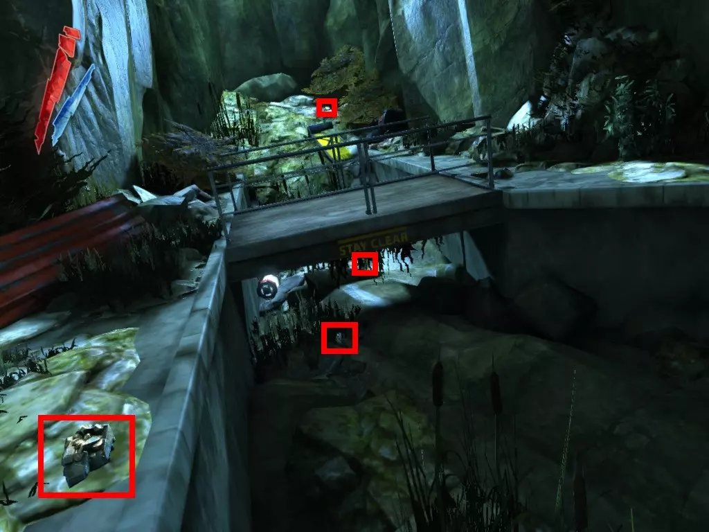 继续前往空旷的运河,4枚硬币位于最左侧的边缘,靠近巨大的闸门旁。 战利品:20 总计:175