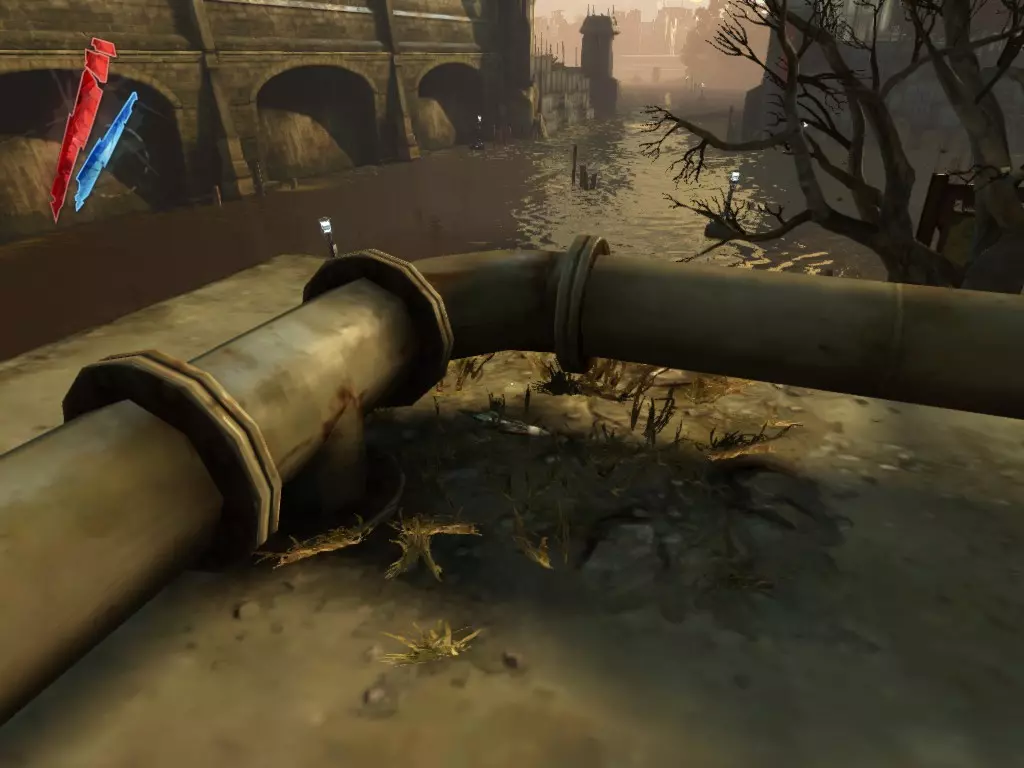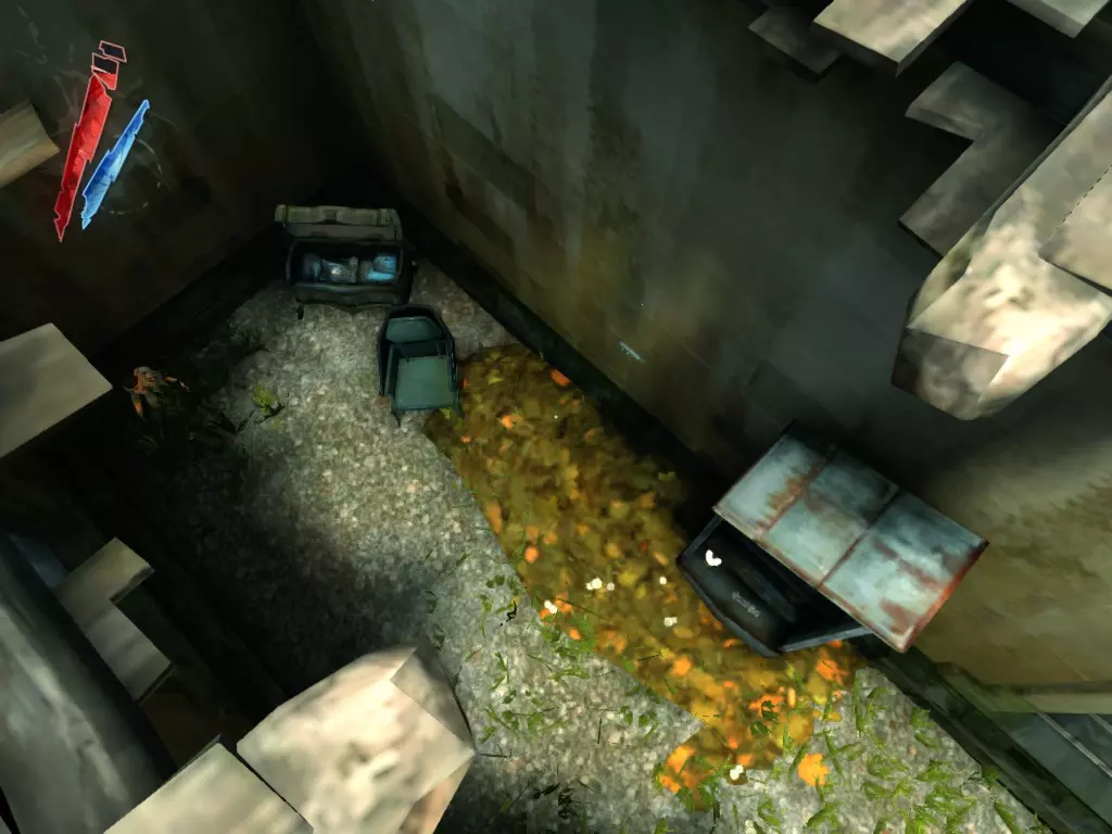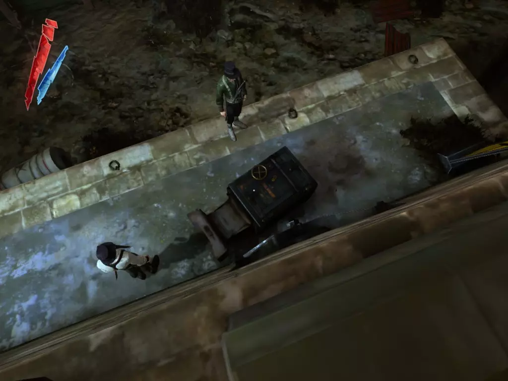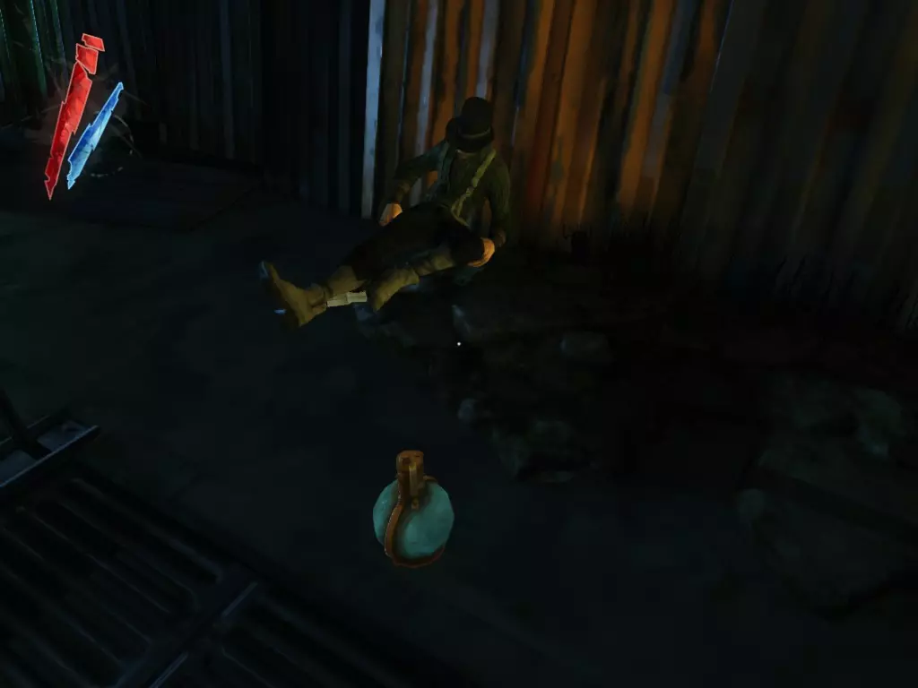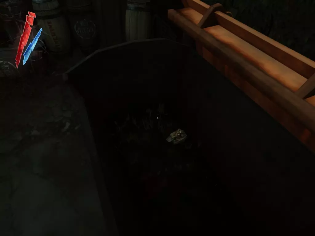 如果你转身沿着运河往回走,在右侧的大型排水管道里有7枚硬币和一份精炼鲸油。我已经标记出它们的位置,因为这些东西不太容易被发现。 战利品:50 总计:461