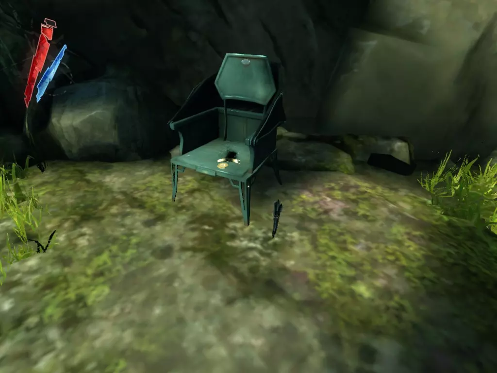在黛利拉雕像附近的悬崖上,椅子里有一个骸骨护符和一枚硬币。 战利品:10 总计:725