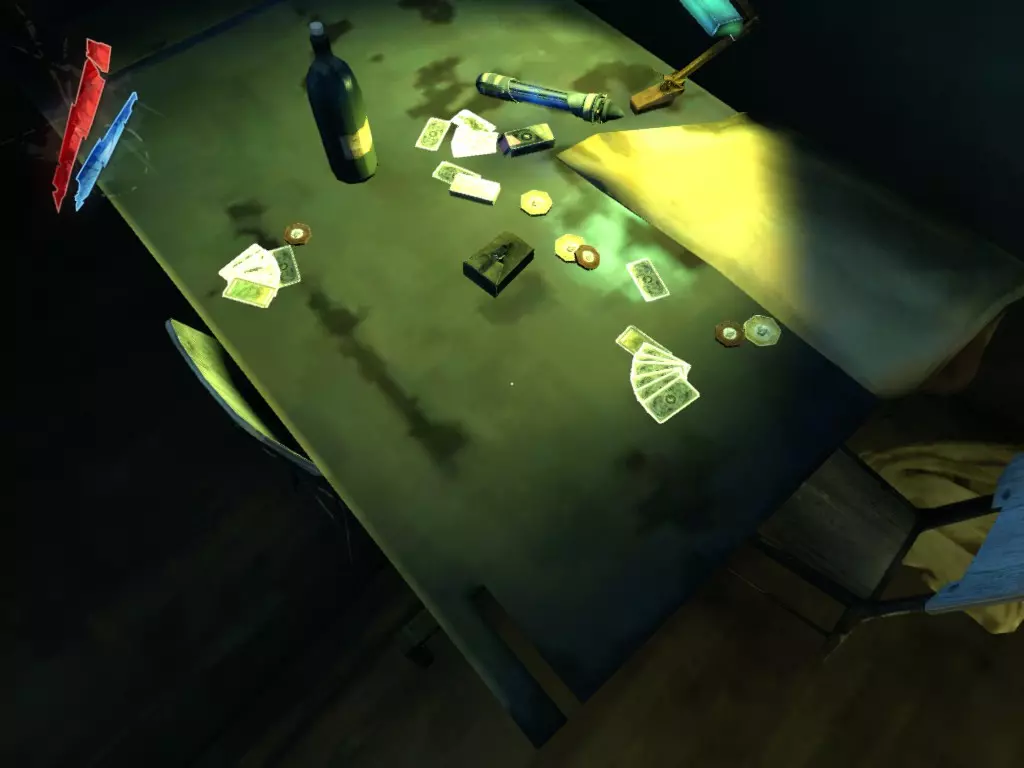 在黛利拉的工作室里,邪恶灯笼旁的桌子上放着一些加工过的鲸油和一枚硬币。 战利品:40 总计:1510