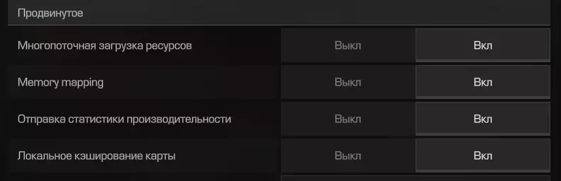 “高级”选项卡 该选项卡负责游戏资源、资源分配及加载。建议全部开启,这样可以获得最大的帧率提升。开启这些参数可提升多达20帧,大家可以自行判断。