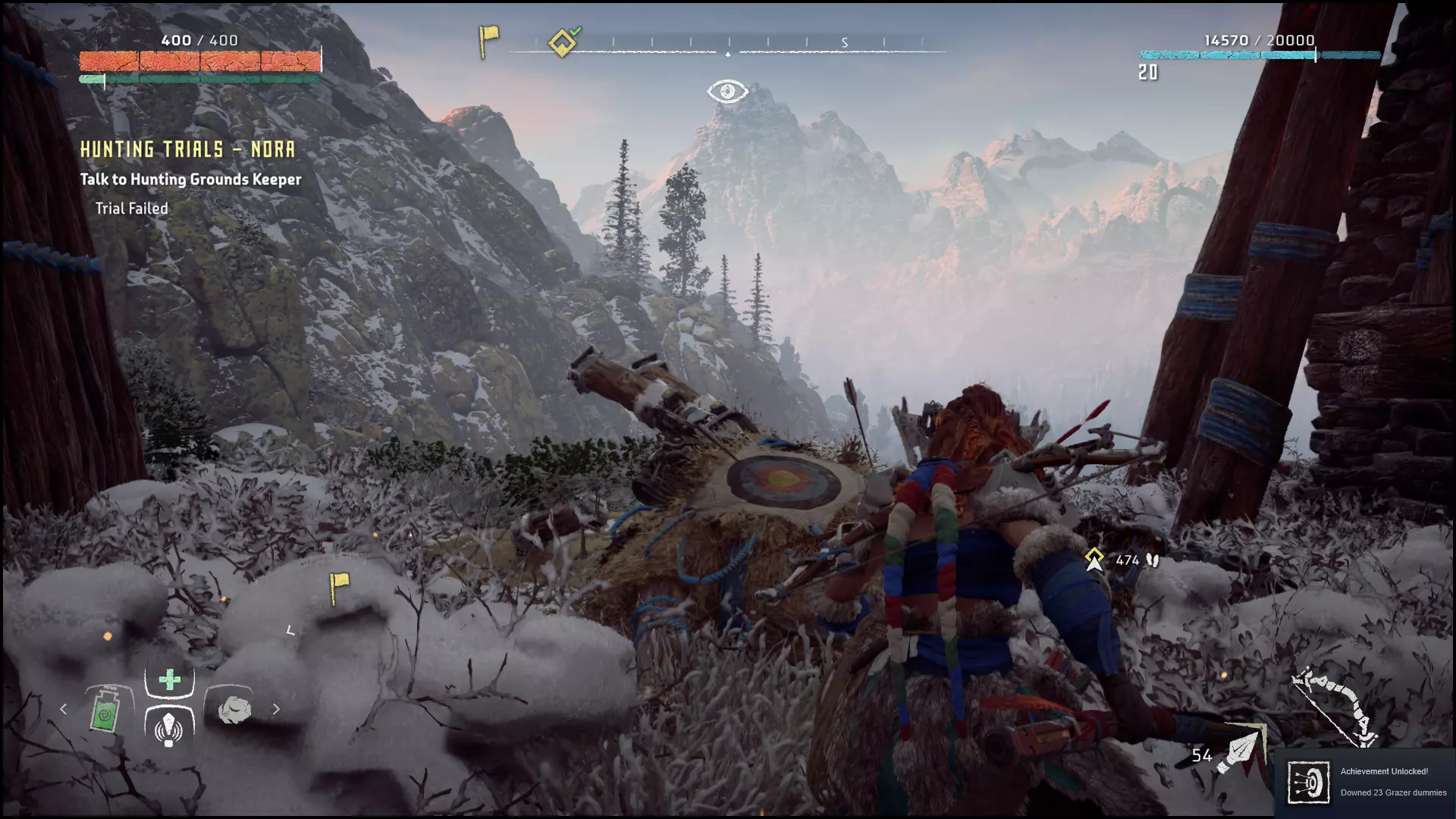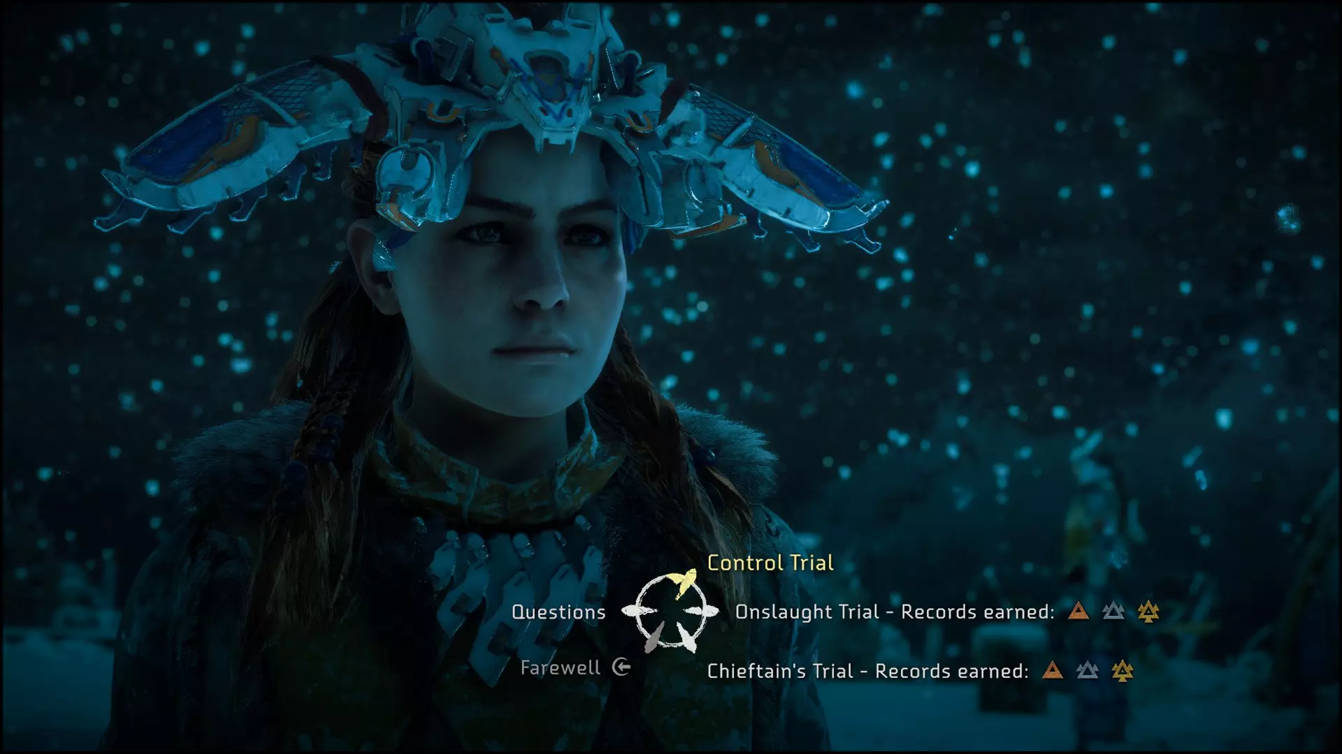 我给你留下了【控制试炼】,因为它是所有《地平线:零之曙光》DLC“冰尘雪野”活动中最快通关的(不到50秒)。