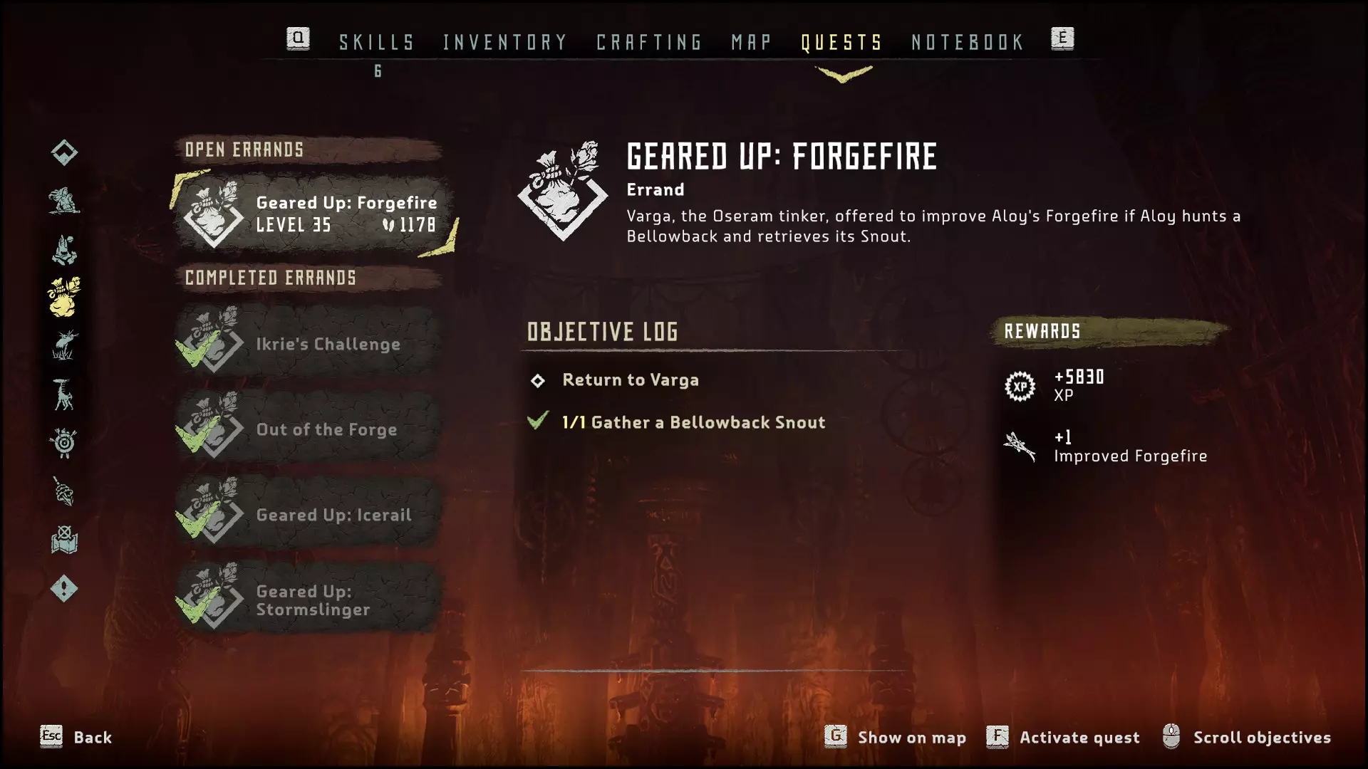 所有活动已完成 完成“大坩埚”区域的长颈兽、土匪营地和狩猎场。