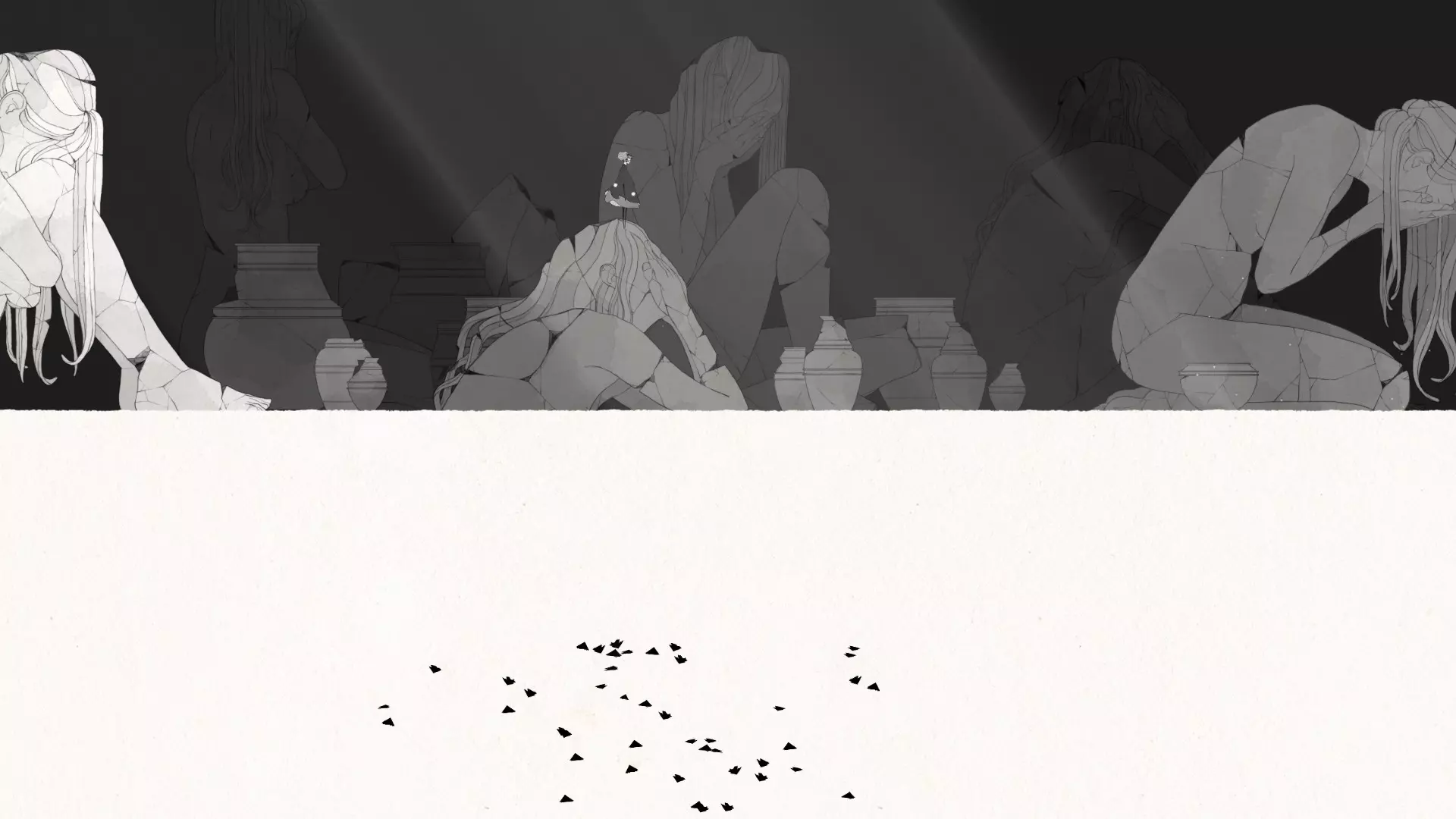 愤怒/Гнев 第二阶段。 第二章。当你躲避风暴并破坏地板后,你会进入一个黑白镜像房间。重要的是不要打碎其他雕像,而是打碎特定的3个,否则会被弹出房间。