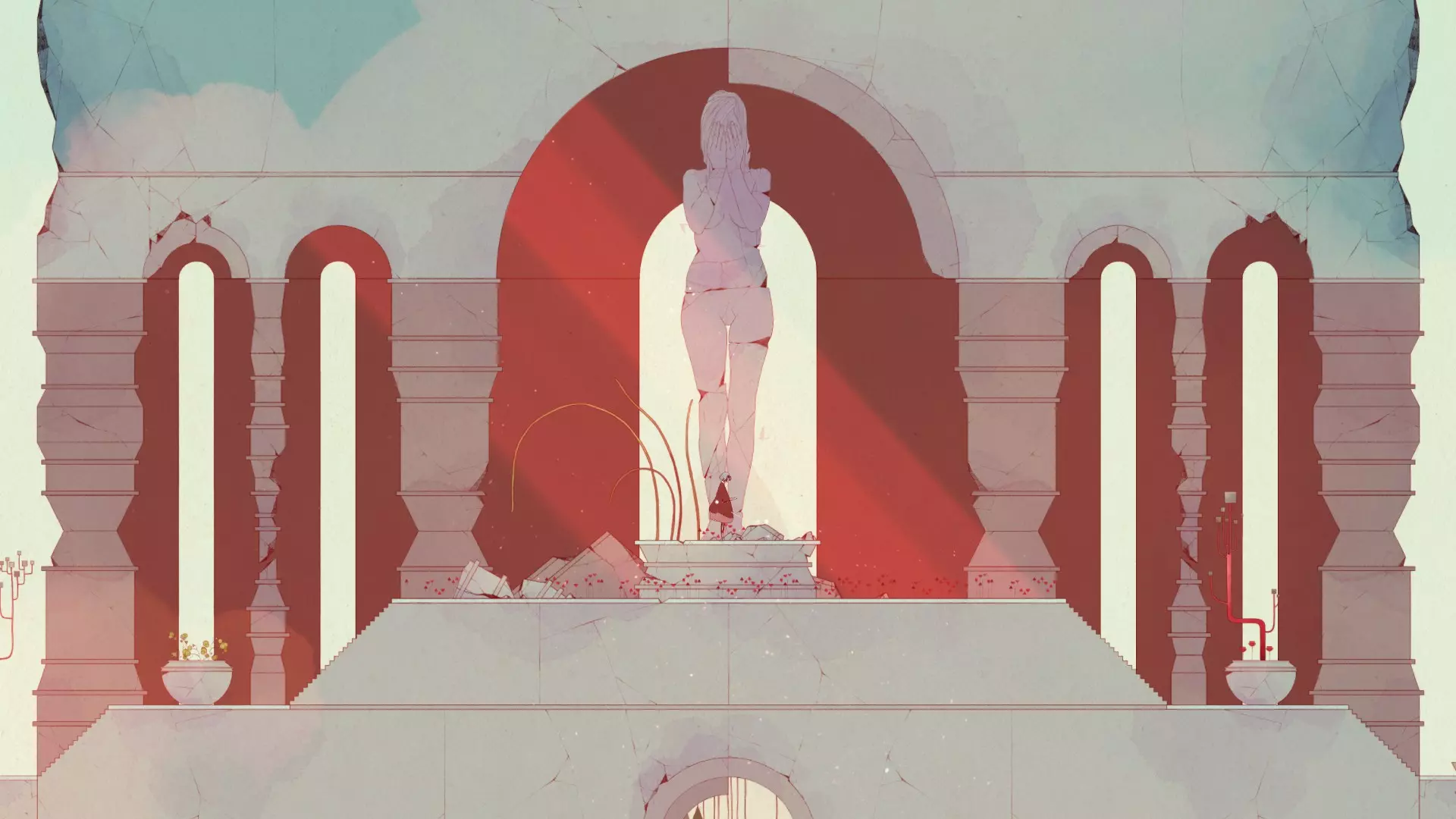 否认/Отрицание 第一阶段。 第一章。在游戏最开始,当你获得跳跃能力后,向左走,会看到雕像前的女主角跪下。保持不动,直到成就解锁。