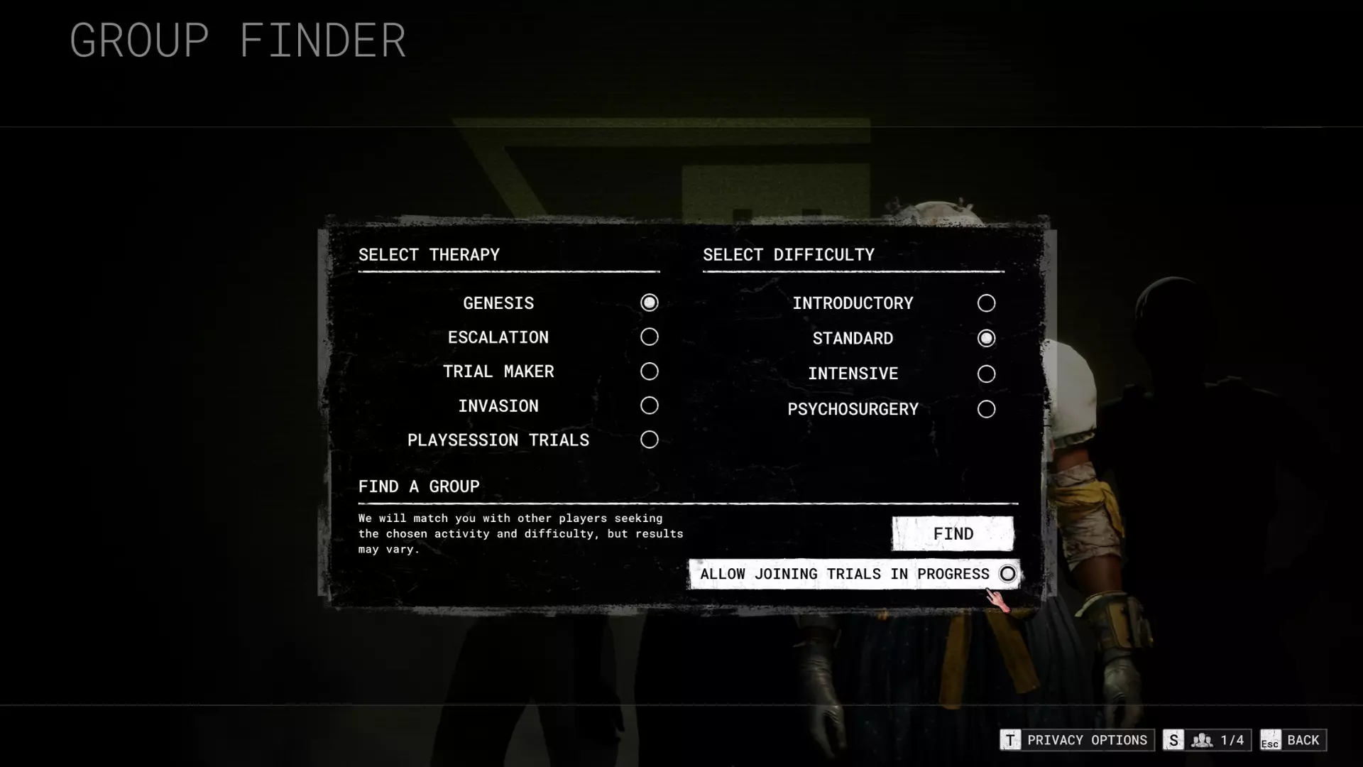 通过队伍查找器菜单决定是否加入进行中的试炼或正在组建的队伍。