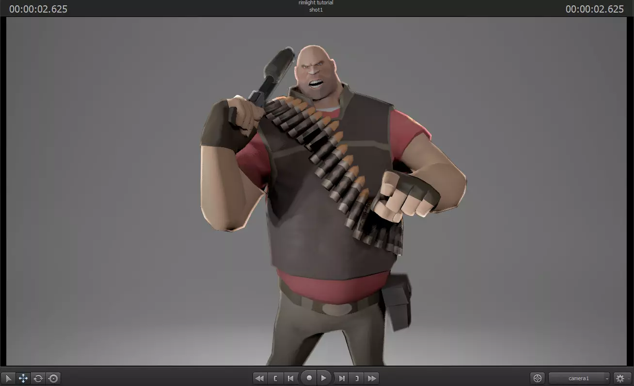 首先是没有任何轮廓光的场景。由于轮廓光的突出效果缺失,画面看起来有些平淡。现在添加一盏能充分照亮角色的灯光。