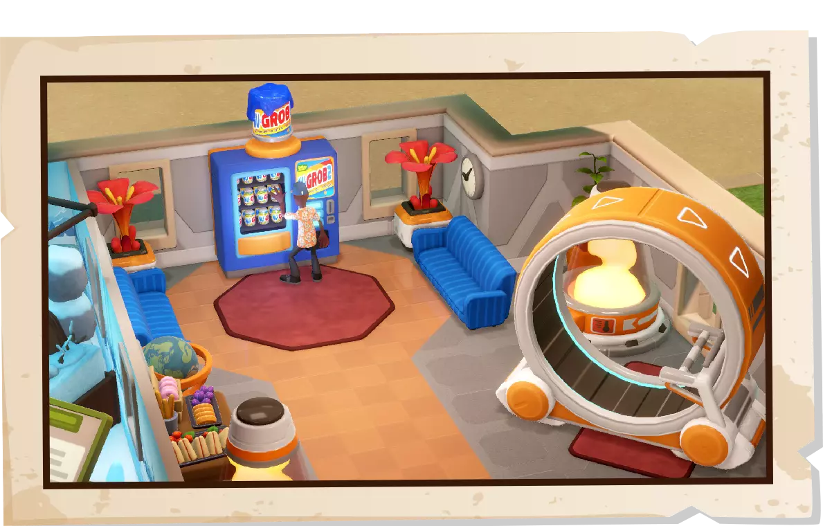在你的太空时代冒险中,你将在三个新的兴趣点收集六个新展品,解锁未来风格的好东西以及一套供员工使用的科幻小工具。不过要小心,别让游客有把猕猴桃鼻涕虫的果味质地和一包普通的杂七杂八的东西混在一起的想法……虽然味道不错,但它们可能会,嗯,让人产生幻觉(相信我们,我们测试过,当然是以科学的名义!绝对不是午餐。)
