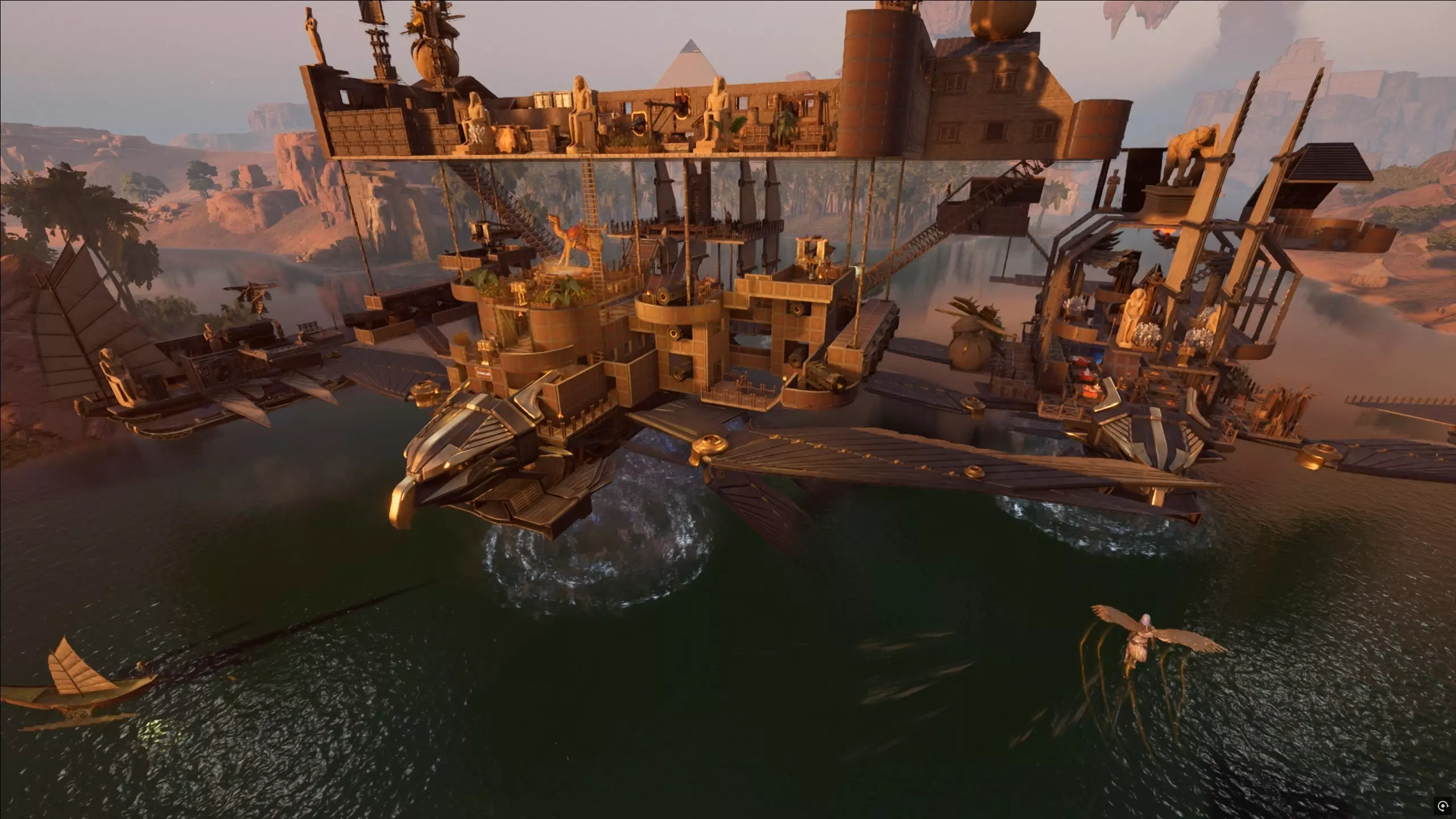我们发现了一个相当严重的问题:我们可能给玩家施加了过大的压力。 尤其是对于不熟悉《灵魂面具》基础体验的新玩家而言,他们的游戏体验仍未达到我们最初设定的标准。 我们需要更流畅、更具吸引力的教程和前期游戏流程,让所有人都能直接享受游戏乐趣。这意味着要对开局体验进行重大修改。 世界互联 是的,这是我们的宏伟目标之一:将雨林世界与沙漠世界完全连接起来!我们为此规划已久,并投入大量资源在海上建造了一个巨大的世界传送门。