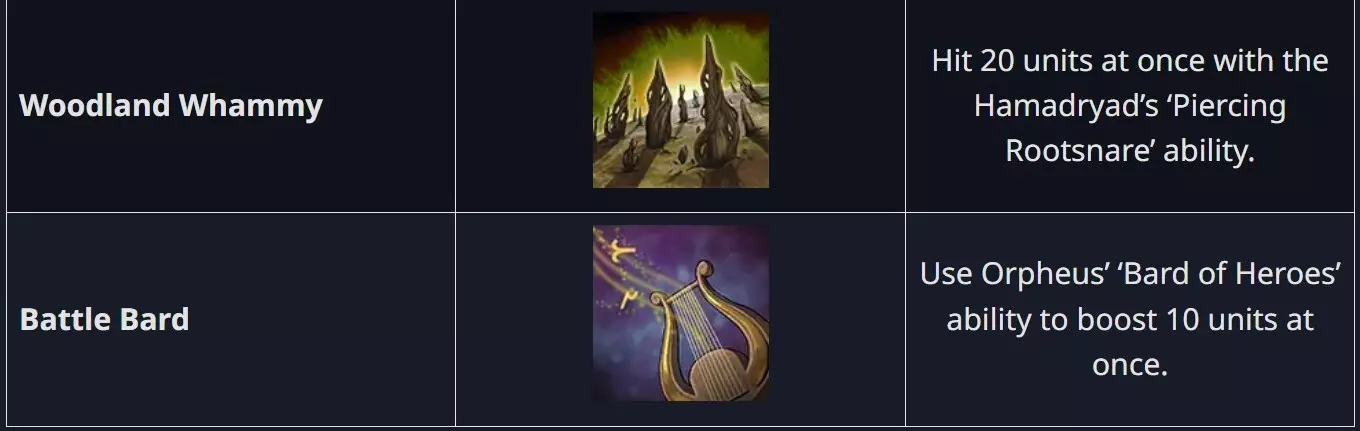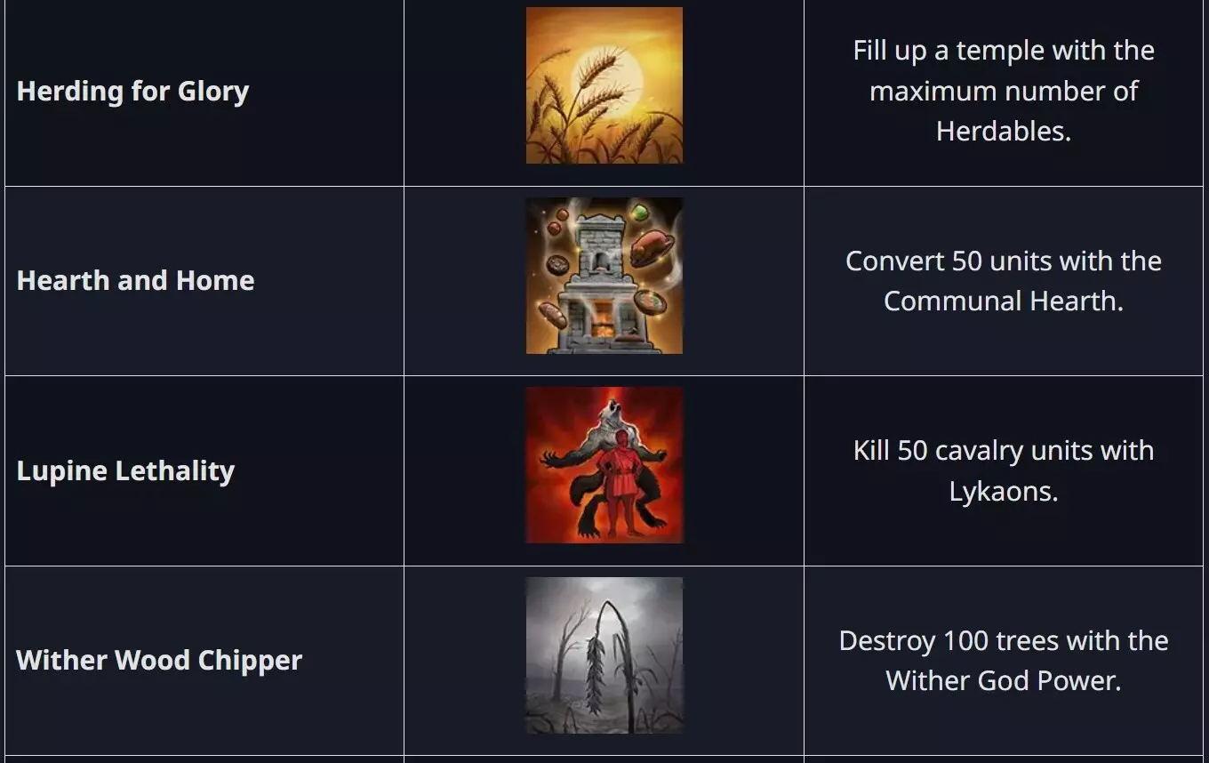 寂静圣所是一场全新的全语音神话战役,讲述了喀戎与俄耳甫斯深入危险的冥府的故事。他们的目标是寻回得墨忒耳的圣物,为那些信奉她的苦难土地恢复平衡。这段旅程将带他们穿越变幻的地形、古老的威胁以及冥府的核心地带。 得墨忒耳神明包带来了全新的神明能力、非传统的神话单位,以及一个植根于重生与生命循环的故事,为新策略和新传奇提供了沃土! 通过以下路径体验:进入战役菜单,选择神话战役,然后从列表中选择寂静圣所。 得墨忒耳神明包新增成就:共10项全新成就可供解锁!若你拥有得墨忒耳神明包内容,可通过游玩新的神话之战以及使用新的得墨忒耳主神来获取这些成就。