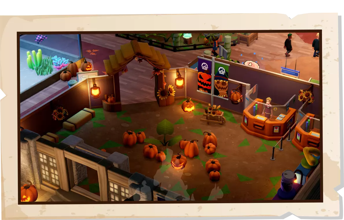 有什么新内容? 【隐藏在冥界僻静角落的全新景点】 【三个全新的女巫工艺可供探索,超自然主题新增一种展览类型】 【一系列实用物品:秋季拱门、干草堆长椅和转角长椅】 【三种照明选择:两个秋季主题灯笼和雕刻南瓜】 【丰富的秋季装饰,如手推车、墙篮、南瓜组合和旗帜套装】 【两款全新墙纸和地板选项,为你的展览打造秋季风格】 【新的女巫访客邻居,她们可能会对你的博物馆施加魔法,效果是好是坏?你最好给她们留下深刻印象……】 双点医院 x 银河护理组合包 双点镇居民和外星人有什么共同点?他们俩都容易患上各种离奇古怪的疾病! 全新的《双点医院》与《银河医院》捆绑包带来双倍的医疗疯狂体验(还能帮你省钱),购买包含这两款游戏的捆绑包可享受15%的折扣,让你成为终极的人类与星际医院管理者。