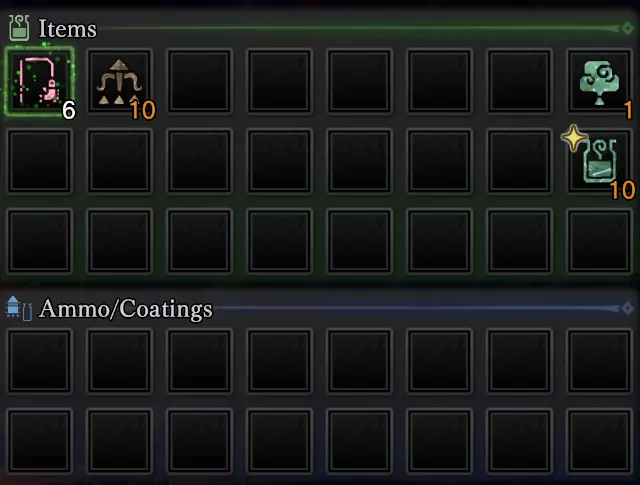 你不需要携带它们。 在需要这些植物的地图上,植物已经预先存在,你只需在狩猎开始时将其设置为自动制作和收集即可。 祝你狩猎愉快。 我并非完美无缺,这份指南也一样。 如果你有关于携带物品的更好建议,欢迎在评论区提出。 让我们一起打造最佳配装!