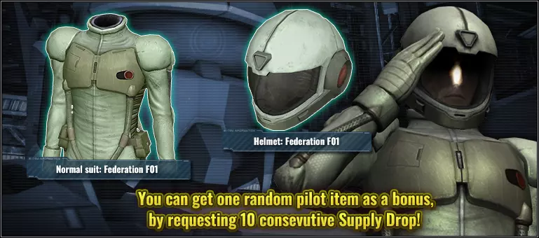 ■活动时间 [太平洋标准时间] 2026年1月8日 00:00 – 2026年1月14日 20:30 [已计划] [中欧时间] 2026年1月8日 09:00 – 2026年1月15日 05:30 [已计划] ■含奖励物品的补给箱 普通10连补给箱 ■奖励物品内容(随机获得以下2件物品中的1件) ■服装 普通套装:联邦F01 ■配饰 头盔:联邦F01 ※活动期间进行10连补给箱抽取,将额外获得第11个补给箱,并得到1件额外物品。 ※单次补给箱不享受此福利。即使连续进行10次单次补给箱抽取,也不会获得奖励物品。■其他素材 ■机体 ・★★★ GQuuuuuuX LV2(泛用型机体,陆战/宇宙战可用,cost:550) ・★★/★ 古夫重装型 LV3–4(泛用型机体,仅陆战,cost:400+) ・★★/★ 古夫飞行试验型 LV3–4(泛用型机体,仅陆战,cost:450+) ・★ 吉姆陆战型[M-MSV] LV4(强袭型机体,仅陆战,cost:400) ※稀有度★★★及以上的机体有资格成为月度MS Bonus机体。