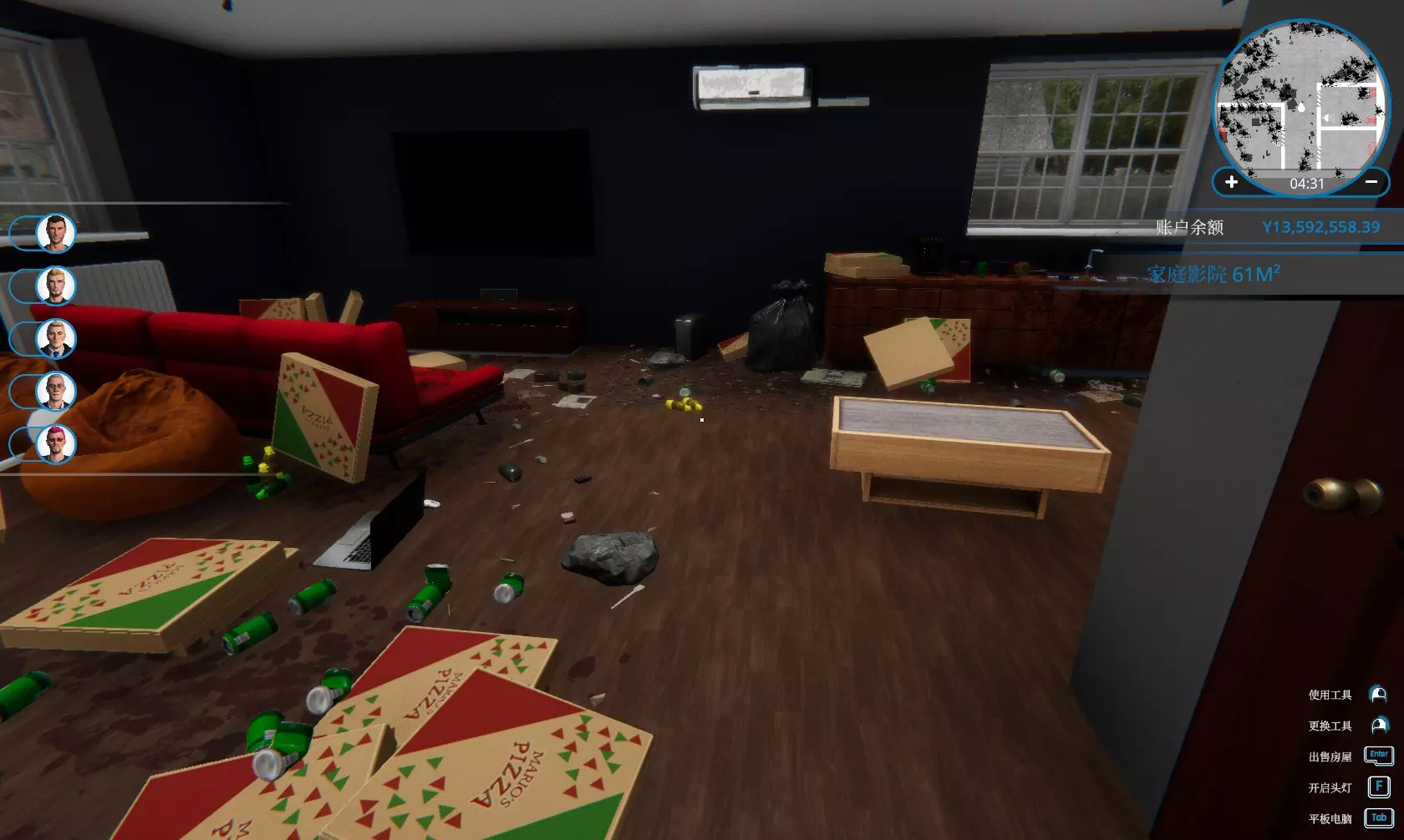 1分钟内完成一个任务。 建议在后期将清洁技能和组装速度加快技能点满后,回到第一个任务“前男友偷走了我的暖气片”里刷。不需要100%完成,冲进门先安装暖气片,再随意打扫一下客厅,达成70%后马上交付即可。