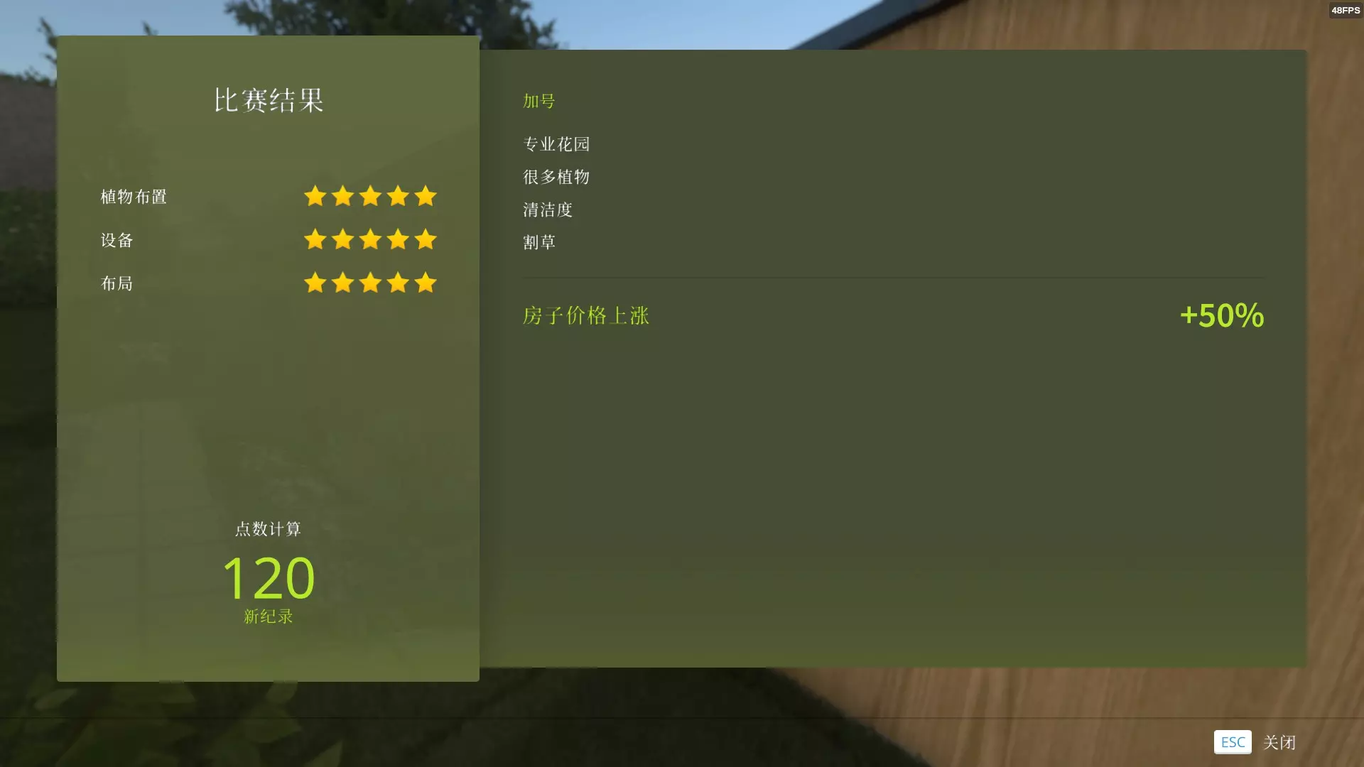 在花园竞赛的任意主题中,布局一项获得5星评价