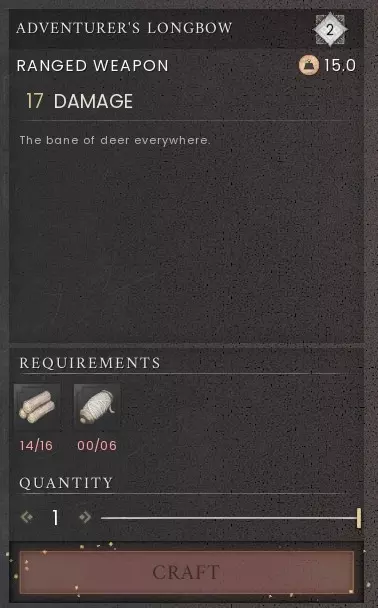 【亡灵游侠之弓(5级)】 学习方式:与宝库Skekven Kara内的龙形雕像互动。前往中央楼梯,在第二个断裂的路径(有火焰/箭矢陷阱处)可找到。 制作 stations:制箭台 所需材料:亡灵之骨x16、优质丝线x4、钢铁x2、蓝宝石x2、宝库碎片x6