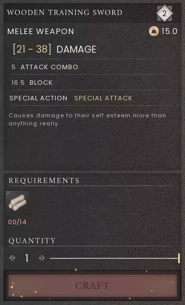 木质训练剑(2级)
