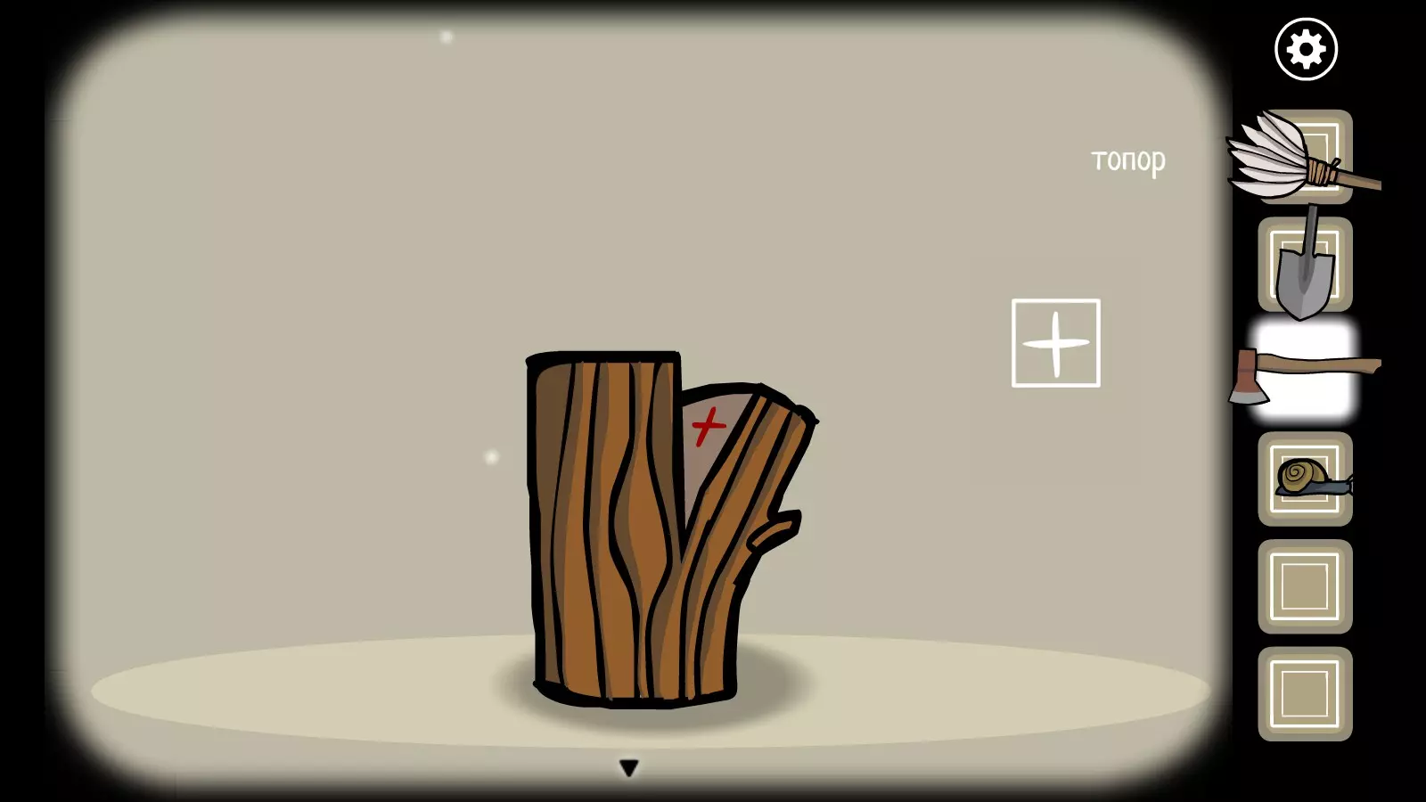 第三个符号(The Third Symbol) 当你从木头上拿起斧头后,用斧头砍木头,直到木头裂开(需要砍9下)。